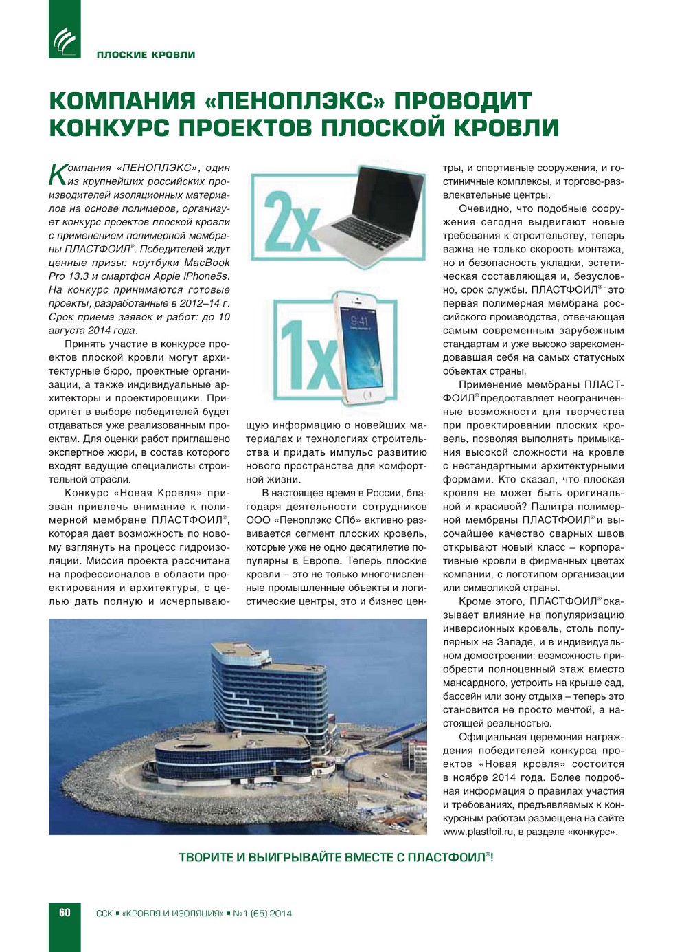 | Компания «Пеноплэкс» проводит конкурс проектов плоской кровли | ...60 |