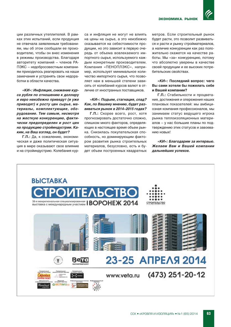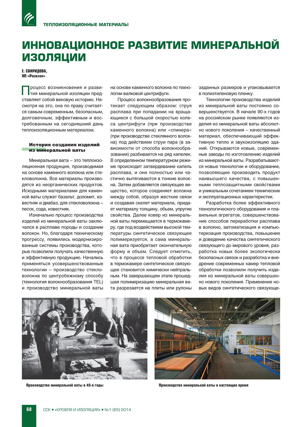 ЖУРНАЛ КРОВЛЯ И ИЗОЛЯЦИЯ 1 (65),...