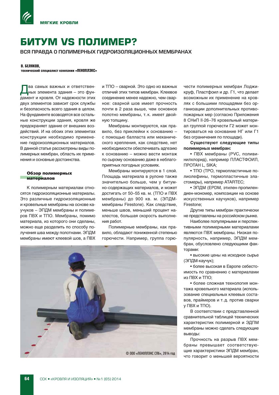 | В.Беляков («Пеноплэкс»). Битум vs полимер? Вся правда о полимерных гидроизоляционных мембранах | ...64 |