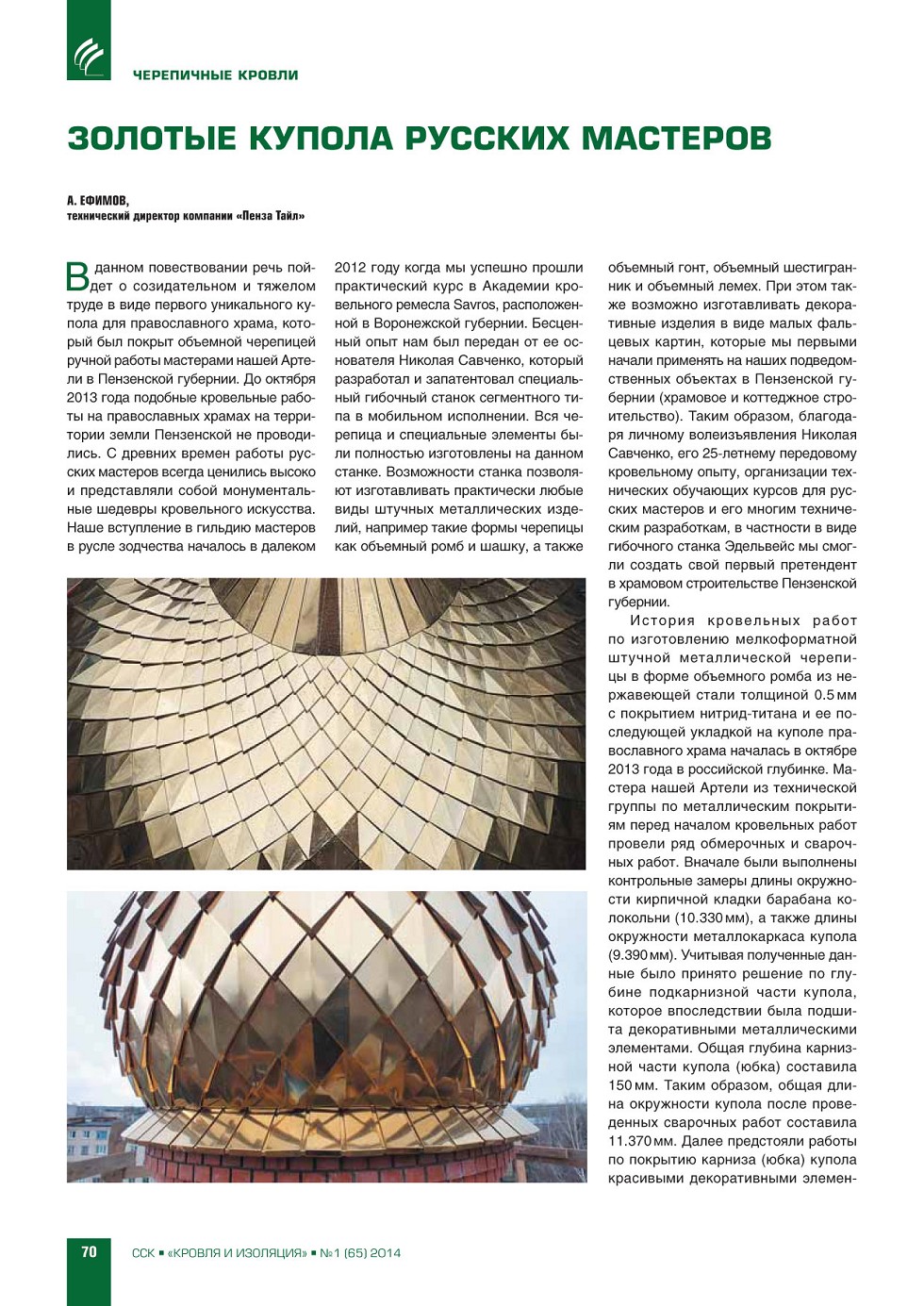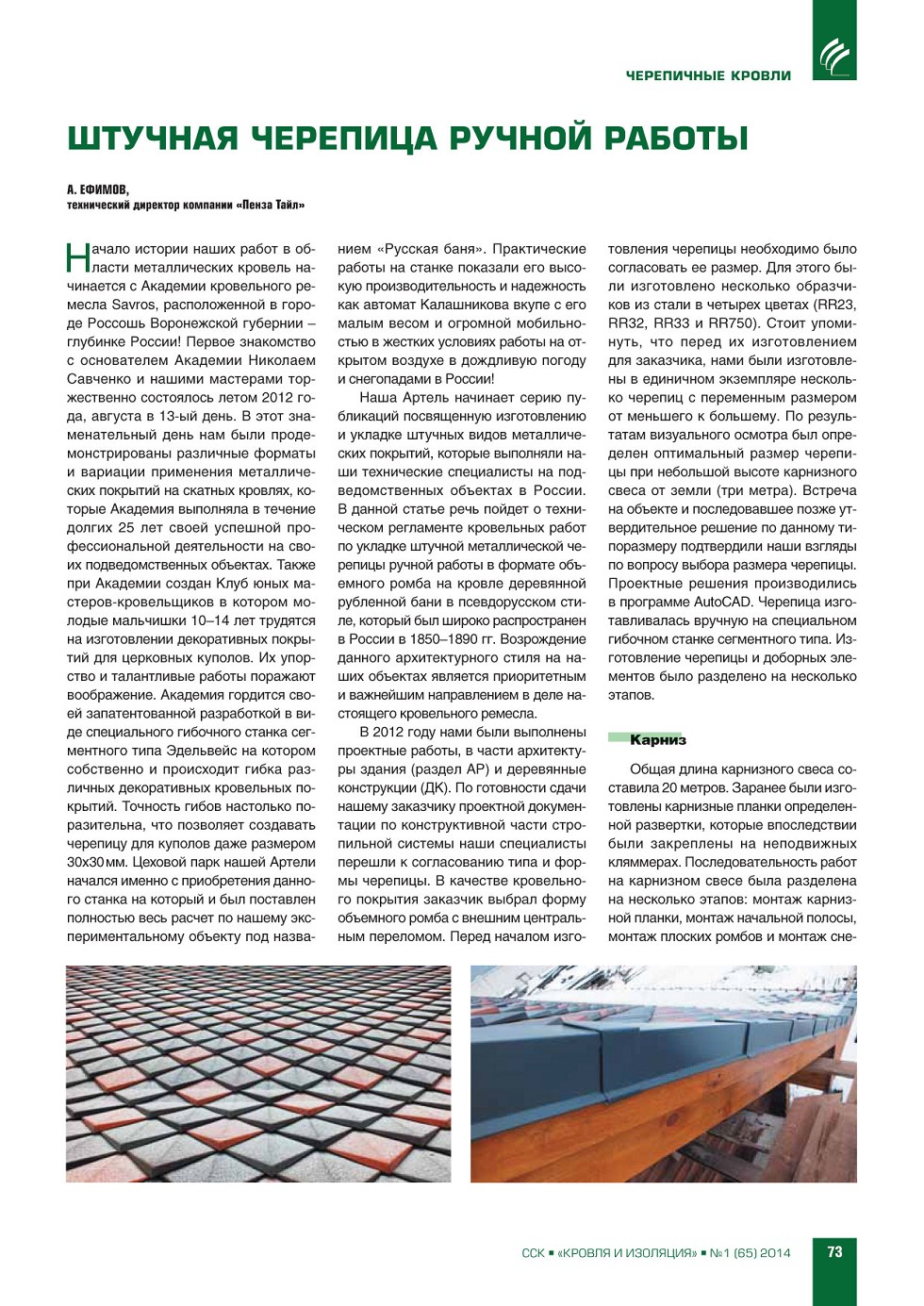 | А.Ефимов («Пенза Тайл»). Штучная черепица ручной работы | ...73 |