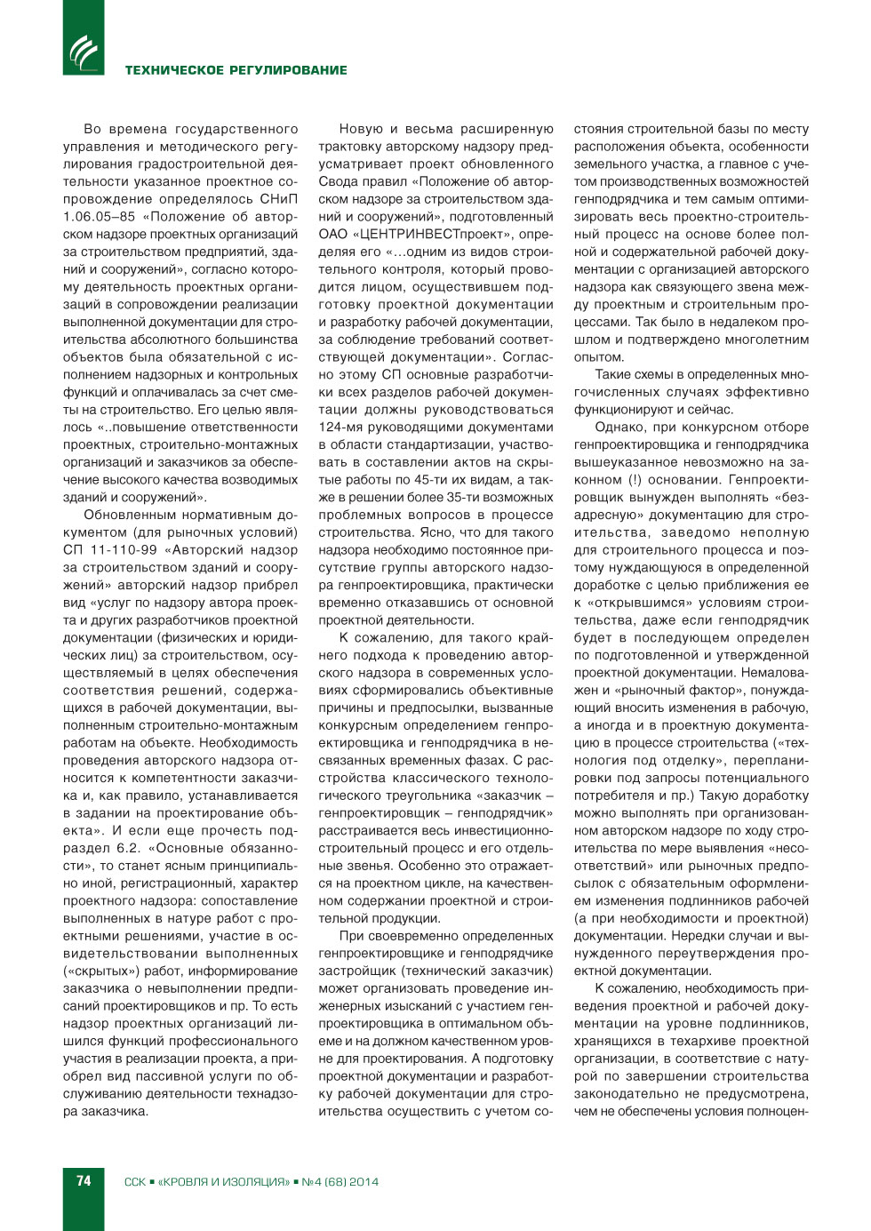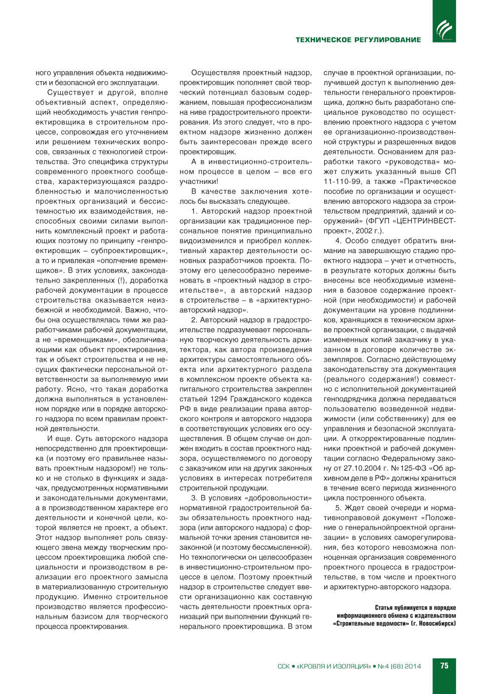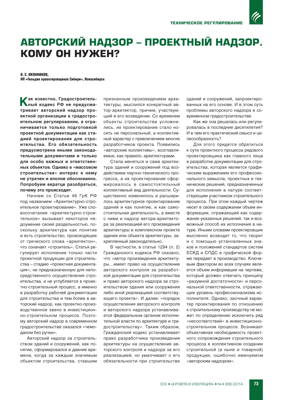 | В.С.Иконников (НП «Гильдия проектировщиков Сибири»). Авторский надзор – проектный надзор. Кому он нужен? | ...73 |