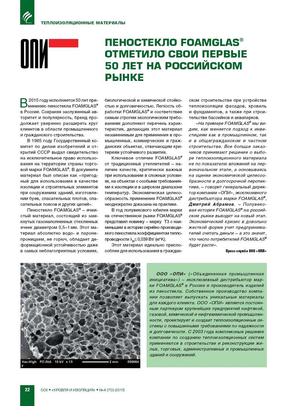 | Пеностекло Foamglas® отметило свои первые 50 лет на российском рынке | ...22 |