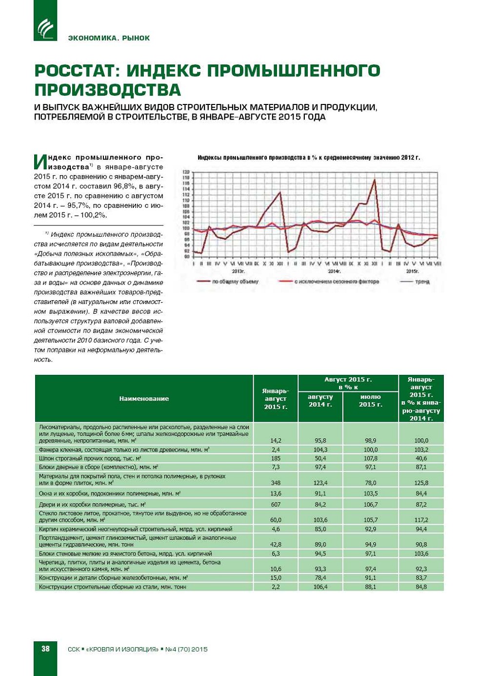 | Росстат: индекс промышленного производства и выпуск важнейших видов строительных материалов и продукции, потребляемой в строительстве, в январе.августе 2015 года | ...38 |