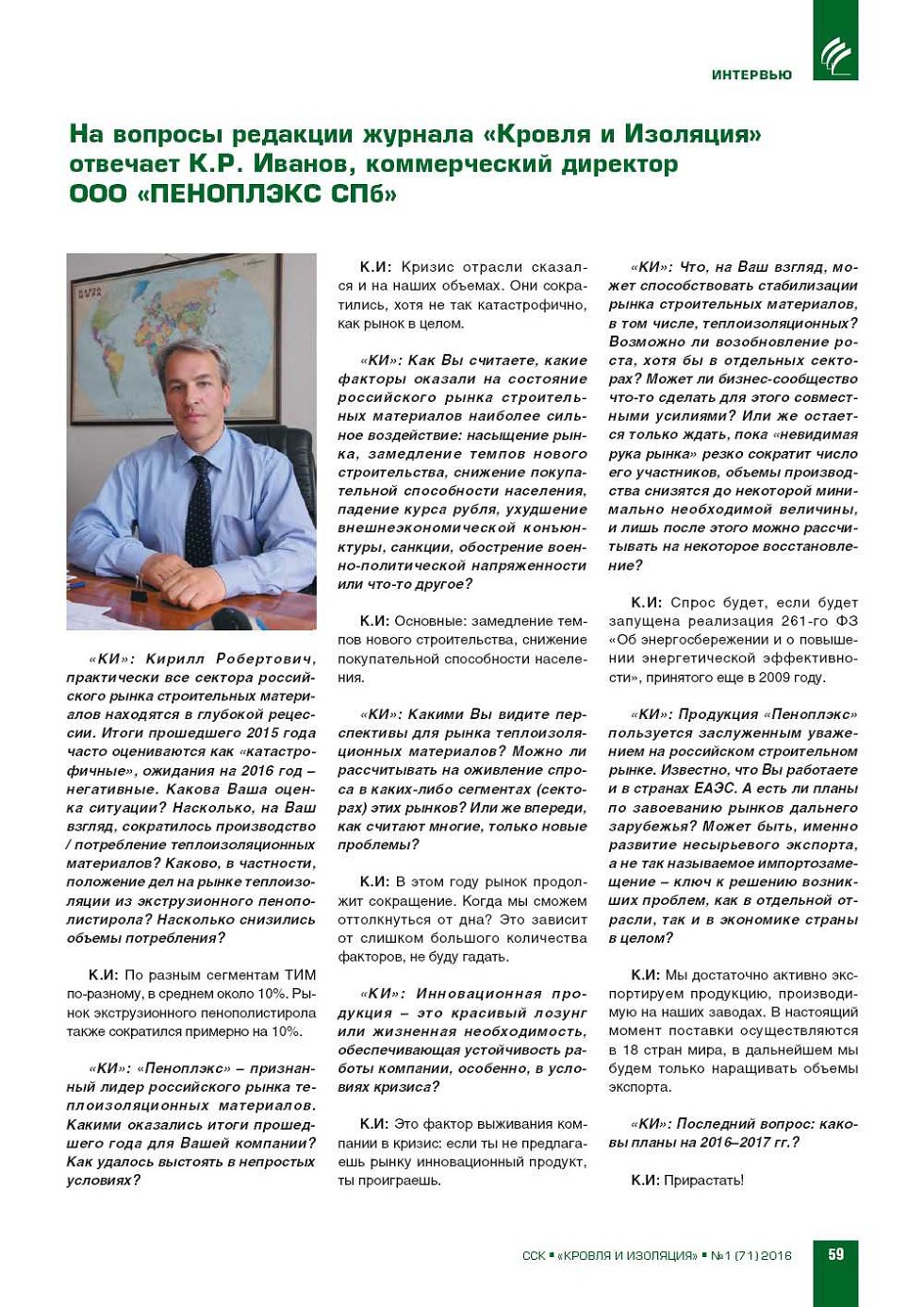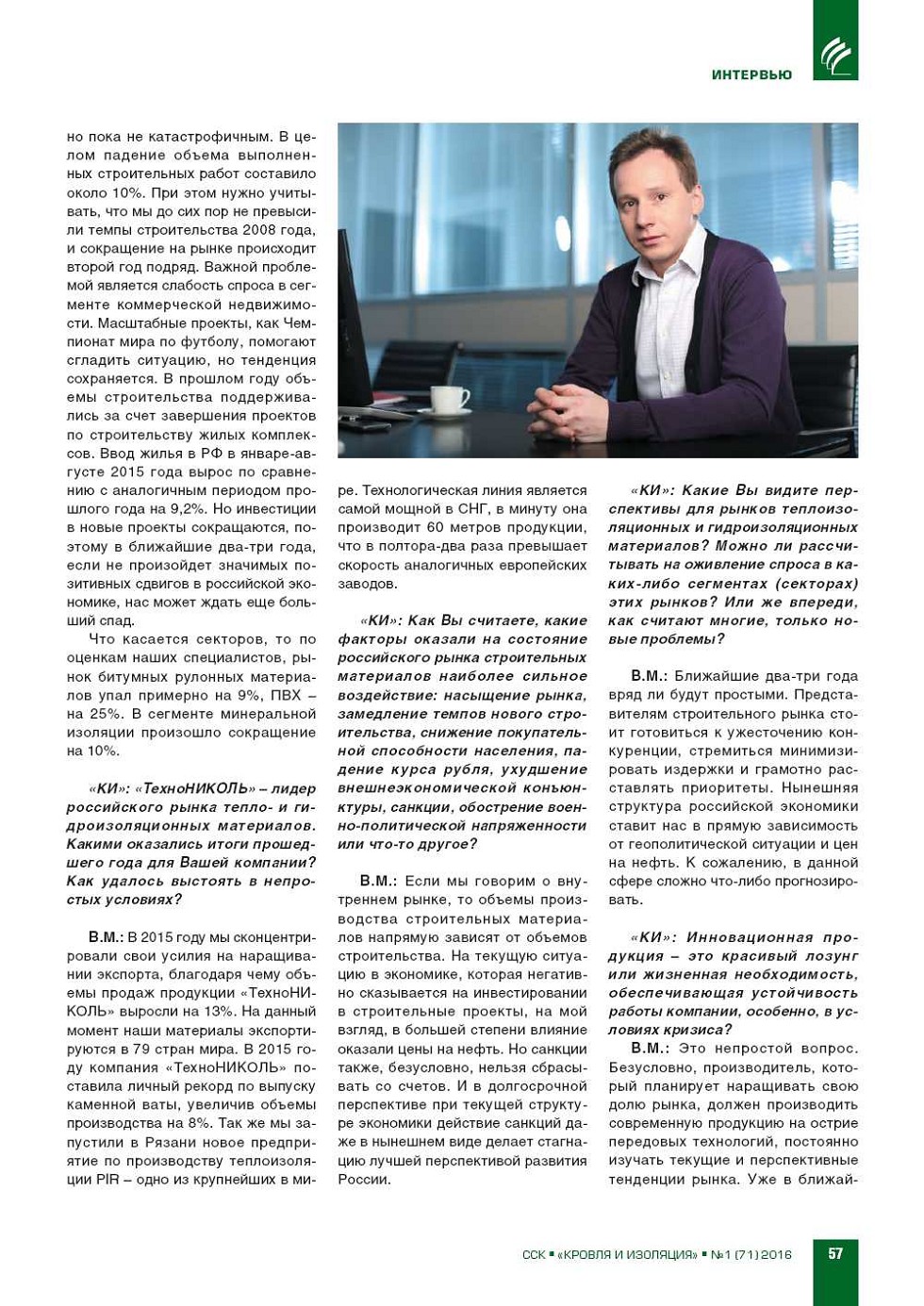 «КИ»: Владимир Валерьевич, сегодня практически все сектора российского рынка строительных материалов находятся в глубокой рецессии. Итоги прошедшего 2015 года часто оцениваются как «катастрофичные», ожидания на 2016 год – негативные. Какова Ваша оценка... |