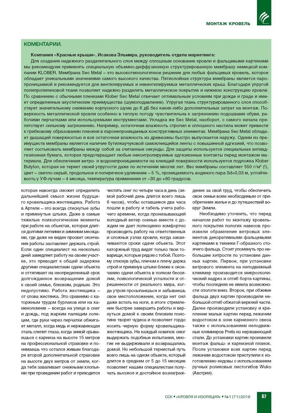 ЖУРНАЛ КРОВЛЯ И ИЗОЛЯЦИЯ 1 (71),...
