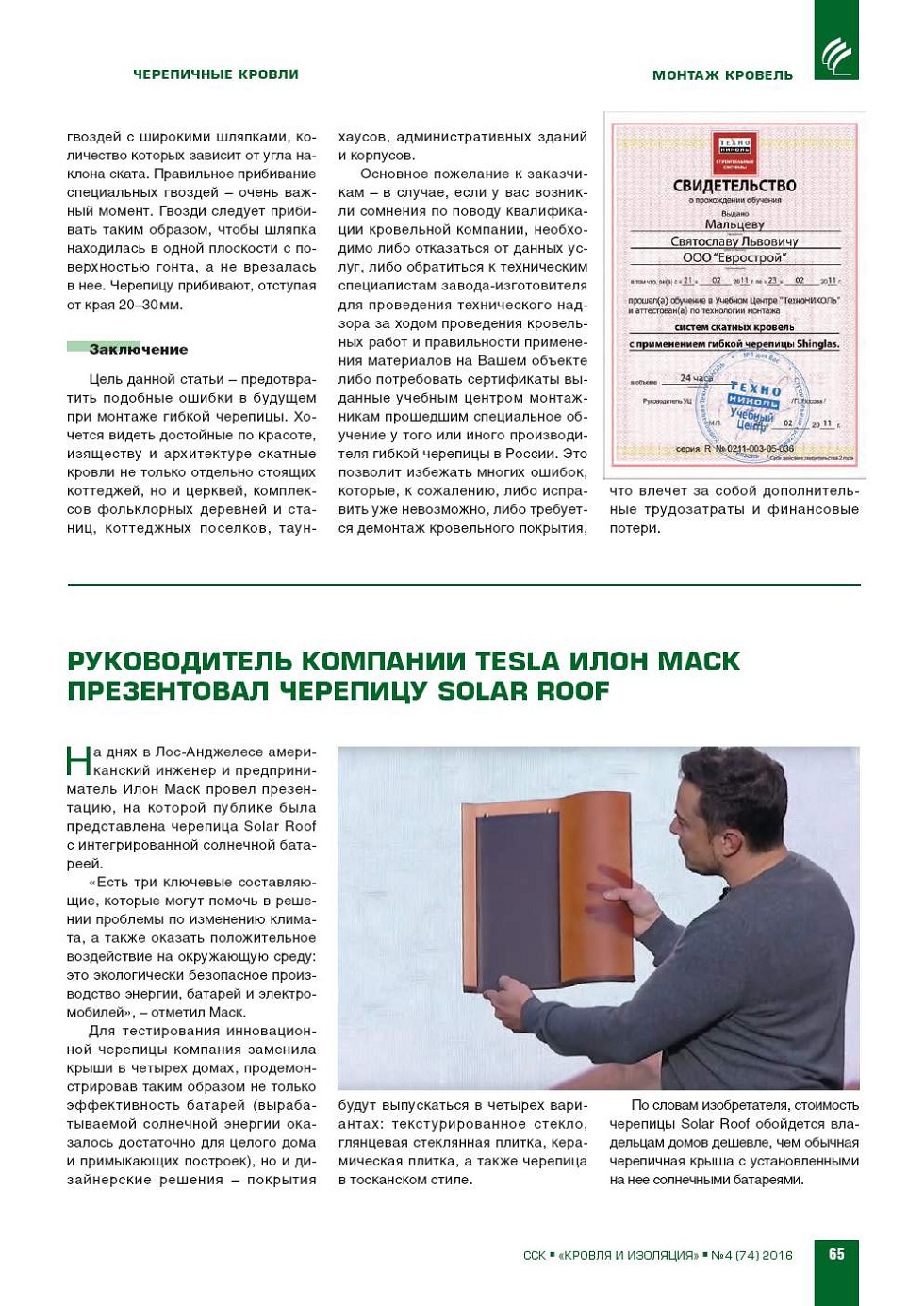 ЖУРНАЛ КРОВЛЯ И ИЗОЛЯЦИЯ 4 (74),...