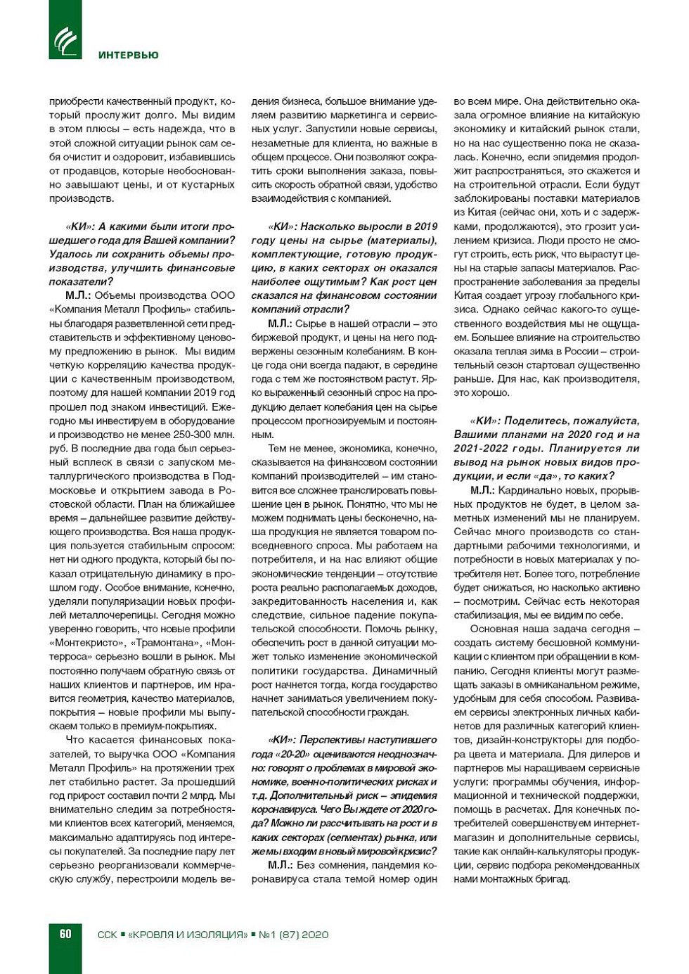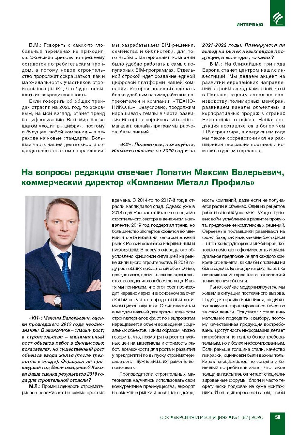 На вопросы редакции отвечает М.В. Лопатин, коммерческий директор «Компания Металл Профиль»