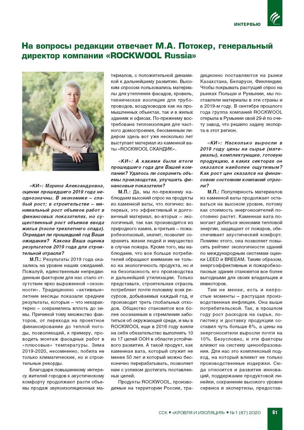 На вопросы редакции отвечает М.А. Потокер, генеральный директор компании «ROCKWOOL Russia»