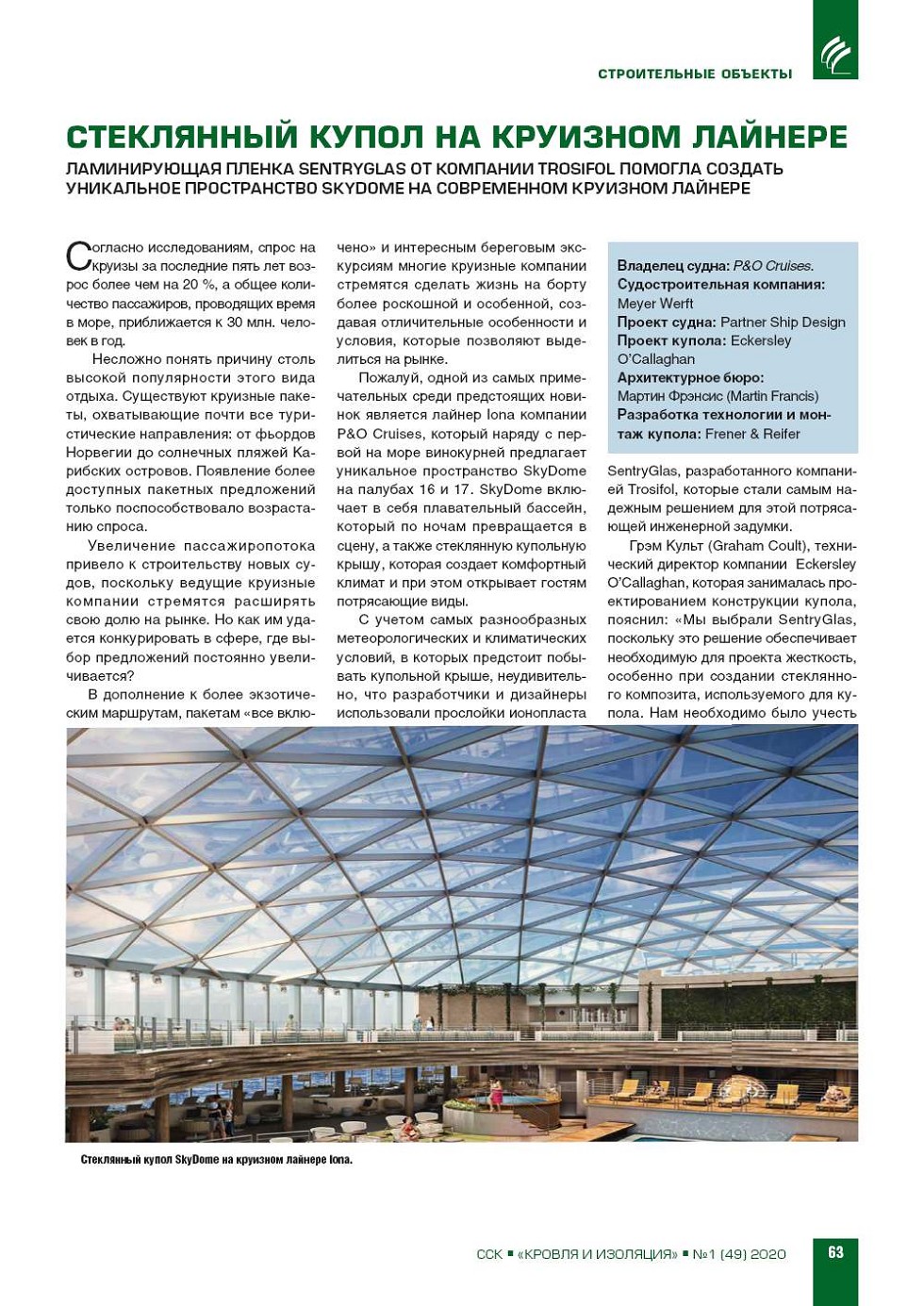 Стеклянный купол на круизном лайнере. Ламинирующая пленка SentryGlas от компании Trosifol помогла создать уникальное пространство SkyDome на современном круизном лайнере