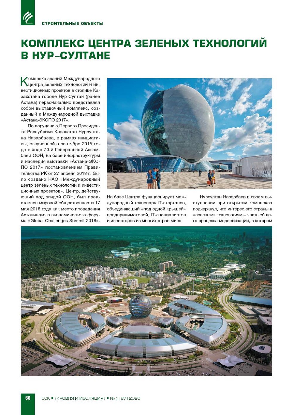Комплекс зданий Международного центра зеленых технологий и инвестиционных проектов в столице Казахстана городе НурСултан (ранее Астана) первоначально представлял собой выставочный комплекс, созданный к Международной выставке «АстанаЭКСПО 2017». |