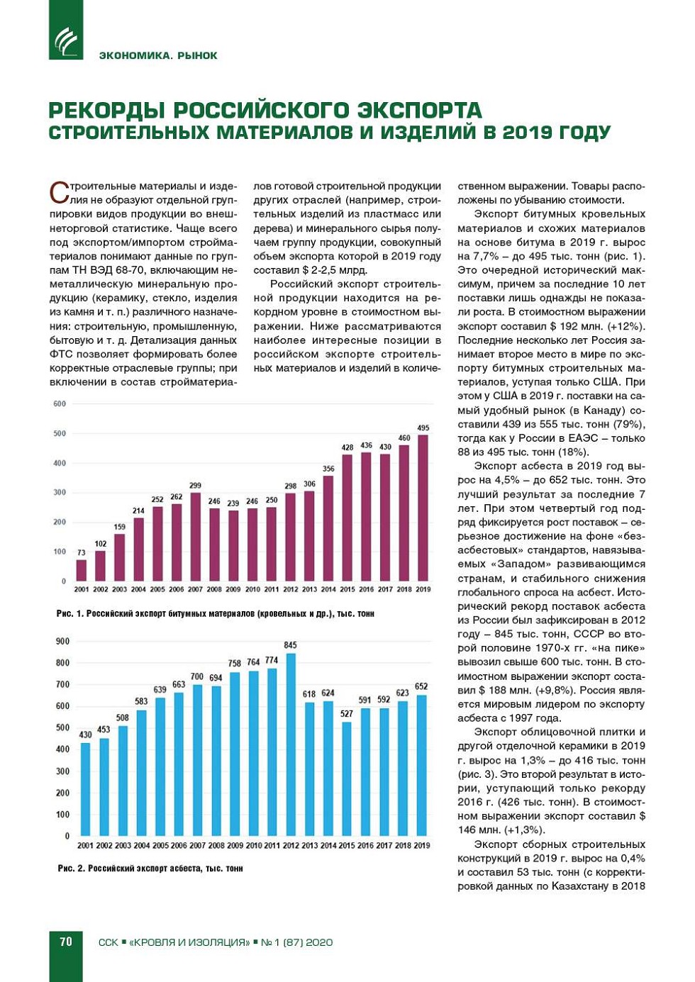 Рекорды российского экспорта строительных материалов и изделий в 2019 году