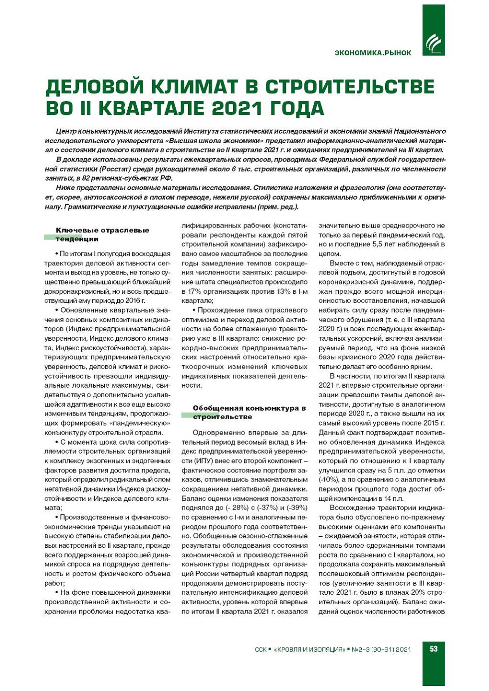 Деловой климат в строительстве во II квартале 2021 года
