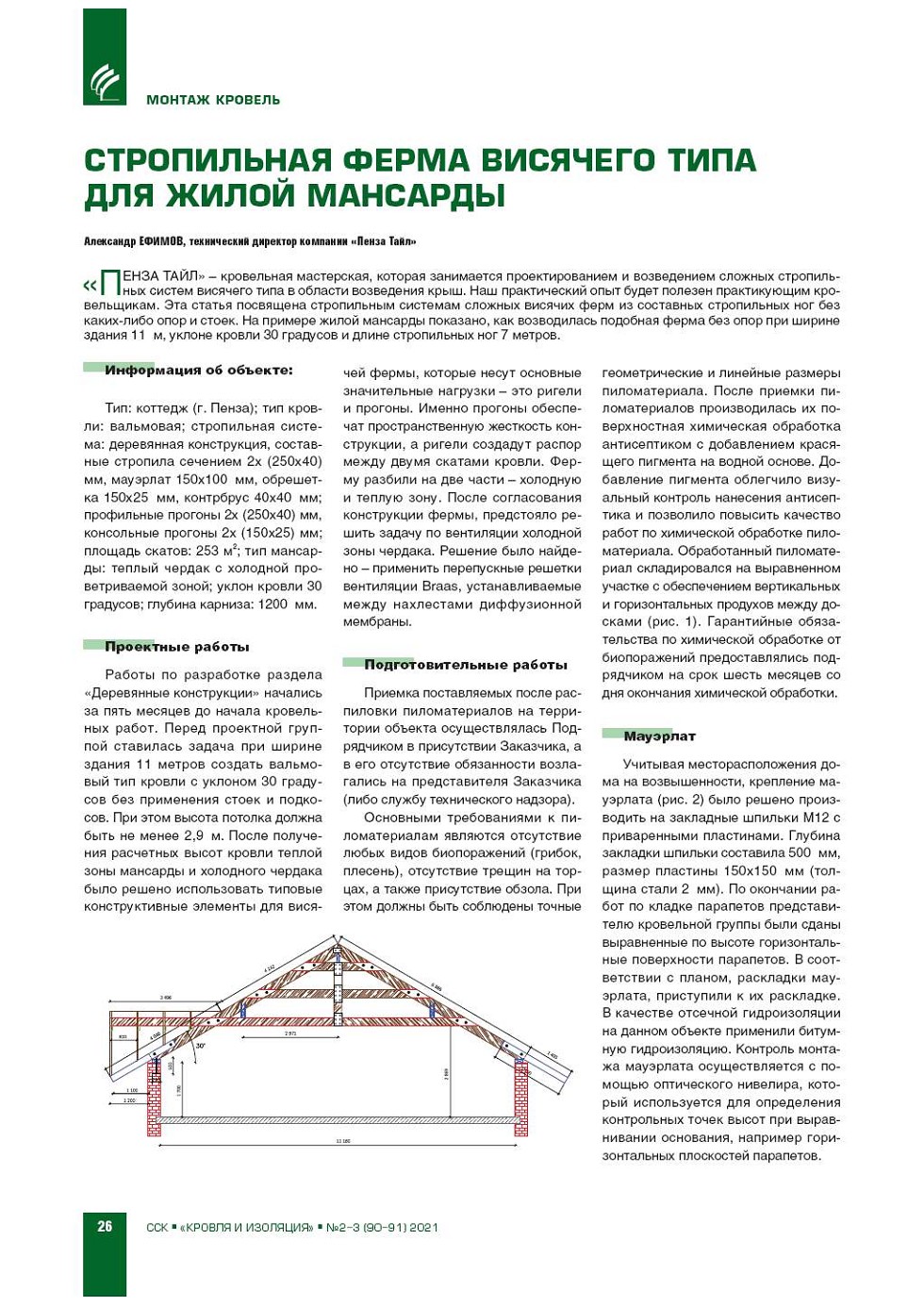 А. Ефимов («Пенза Тайл»). Стропильная ферма висячего типа