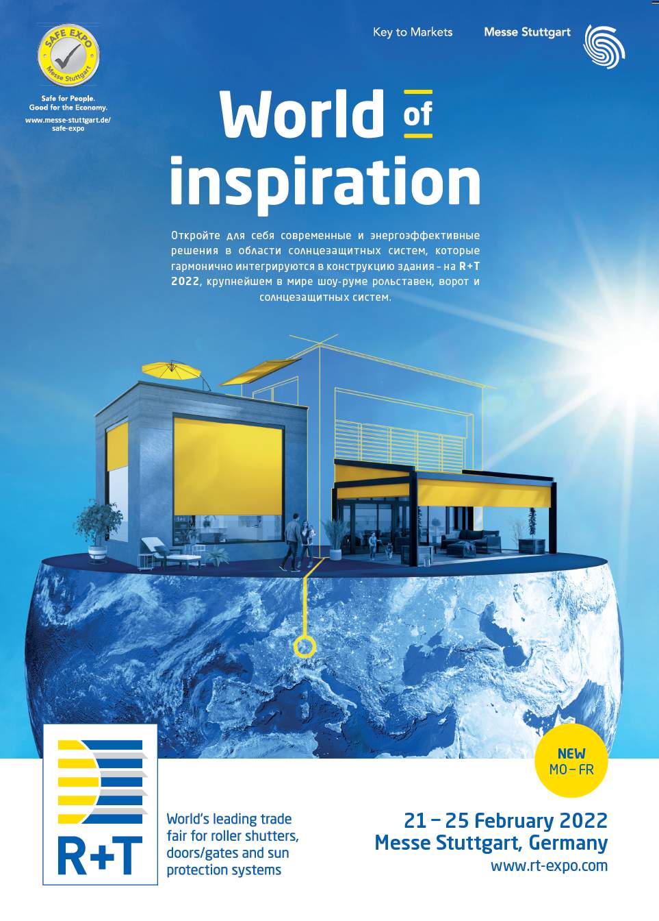 Откройте для себя современные и энергоэффективные решения в области солнцезащитных систем, которые гармонично интегрируются в конструкцию здания – на R+T 2022, крупнейшем в мире шоуруме рольставен, ворот и солнцезащитных систем |