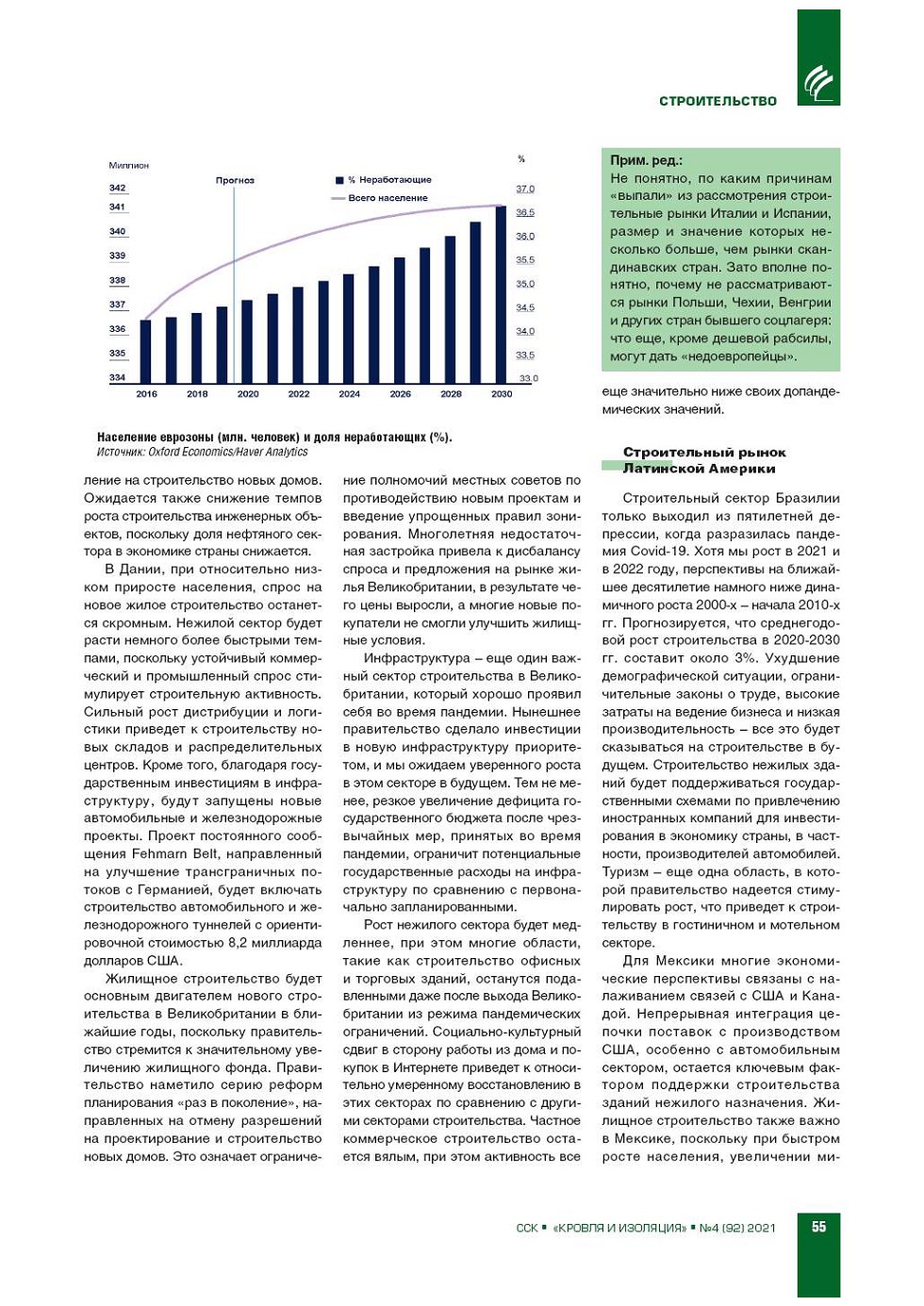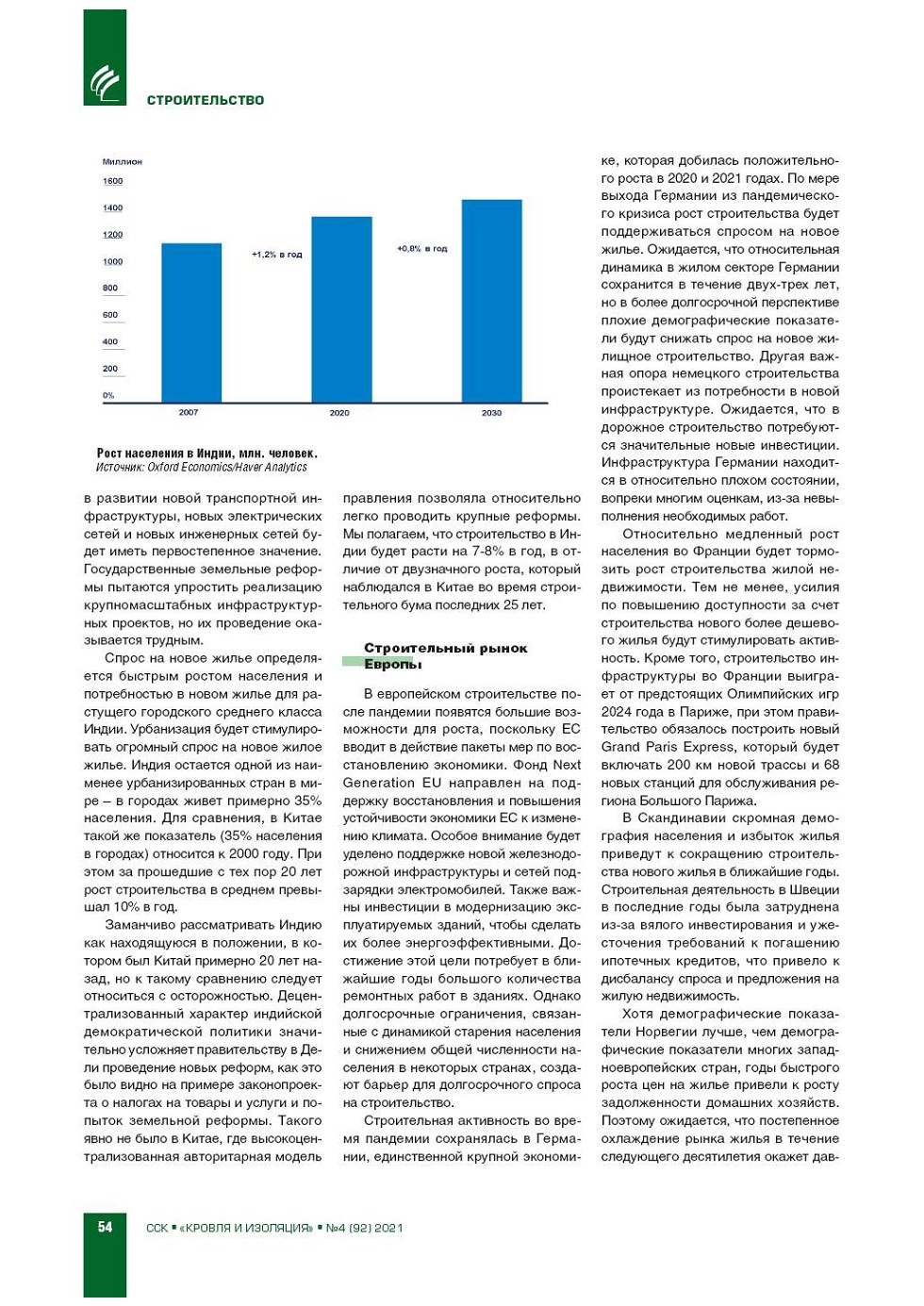 В США рост жилищного строительства (который продолжался в 2020 году, несмотря на ограничения изза пандемии) является движущей силой строительного сектора. |