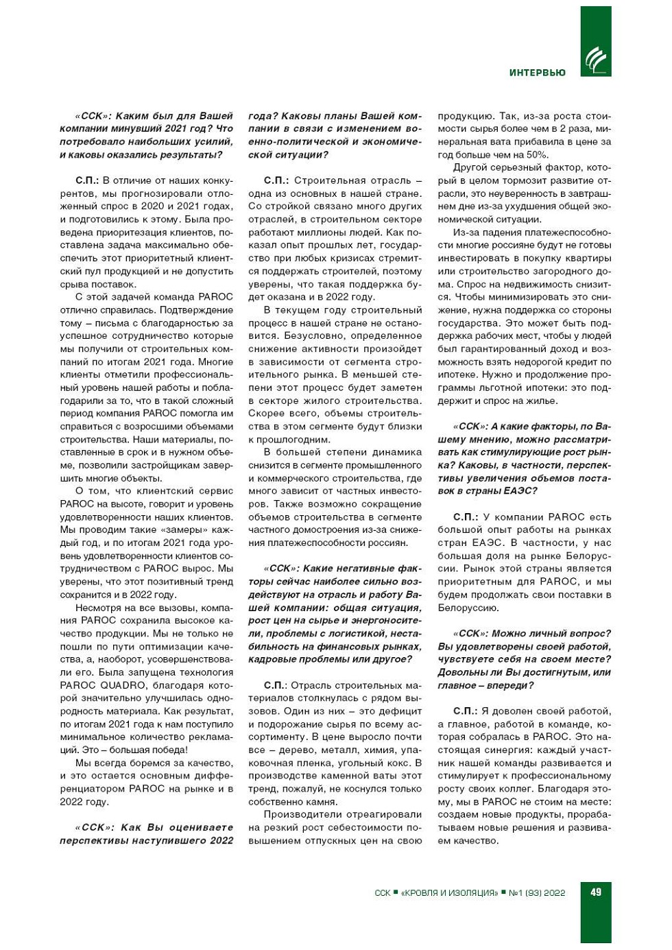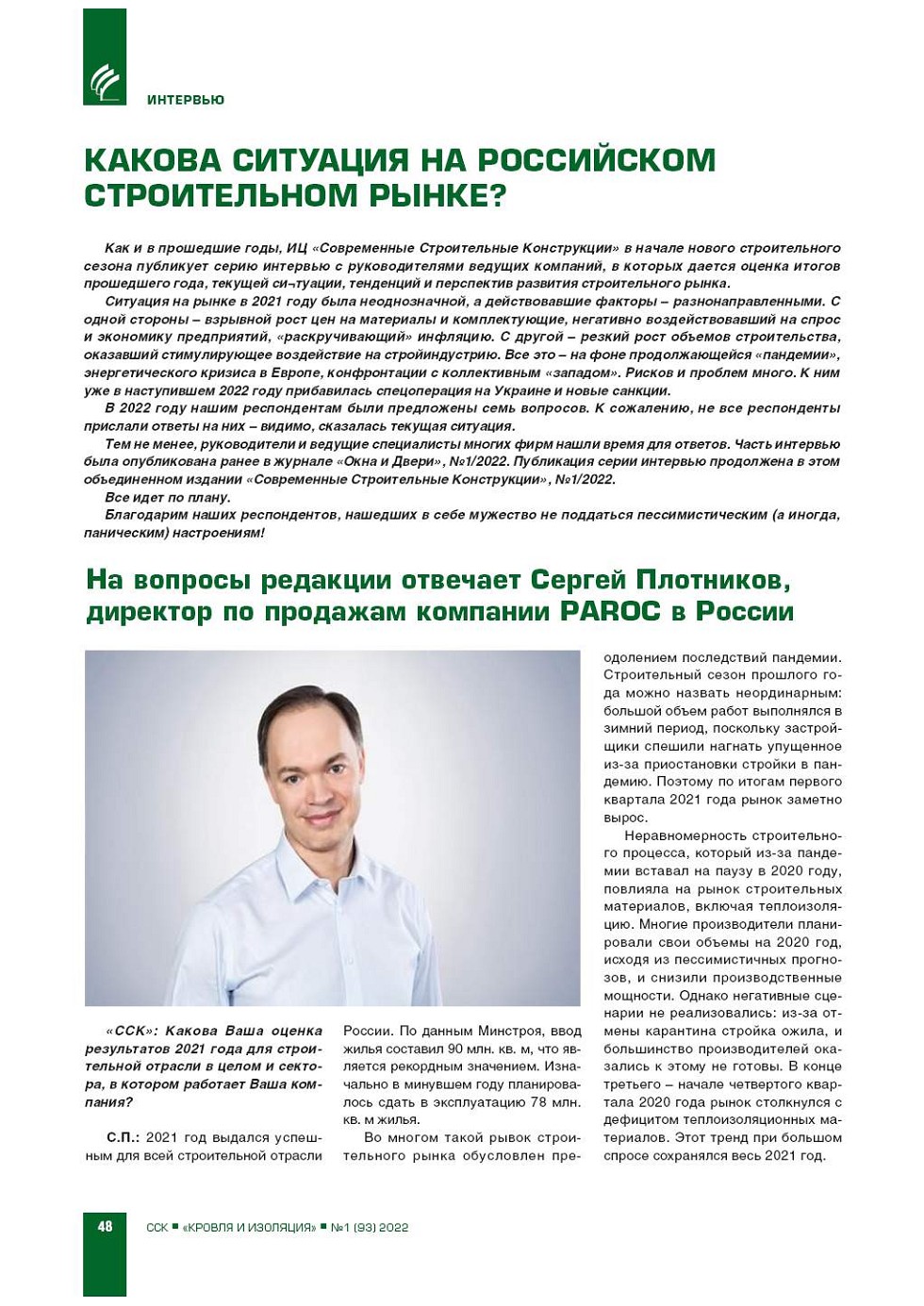Как и в прошедшие годы, ИЦ «Современные Строительные Конструкции» в начале нового строительного сезона публикует серию интервью с руководителями ведущих компаний, в которых дается оценка итогов прошедшего года, текущей ситуации, тенденций и перспектив... |