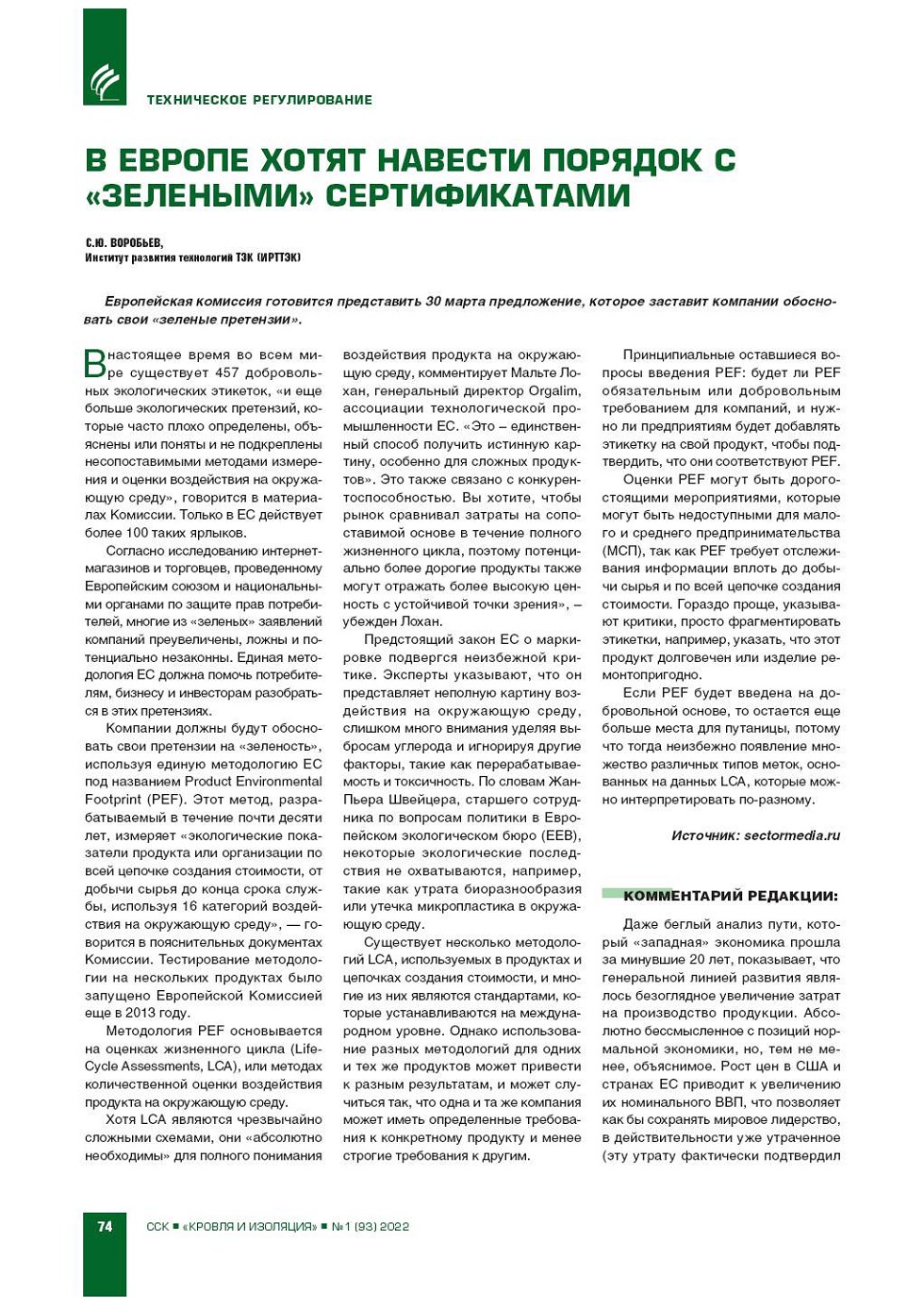 ЖУРНАЛ КРОВЛЯ И ИЗОЛЯЦИЯ 1 (93),...