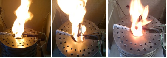 Внешний вид (пламенное горение) образцов в процессе проведения испытания (Бизон, Кроз, Тизол)