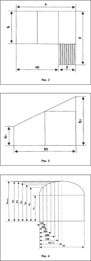 Высота арочных окон или дверей на одной половине измеряется через каждые 100-150 мм по ширине (рис.4).
