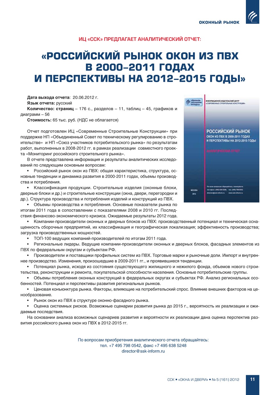 | Аналитический отчет «Российский рынок окон из ПВХ в 2000-2011 годах и перспективы на 2012-2015 годы» | ...11 |