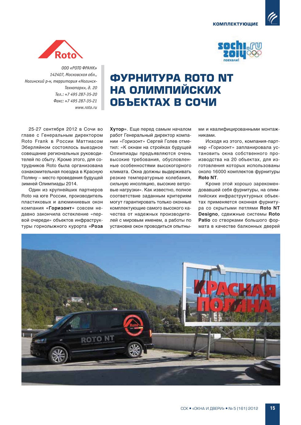 | Фурнитура Roto NT на олимпийских объектах в Сочи | ...14 |