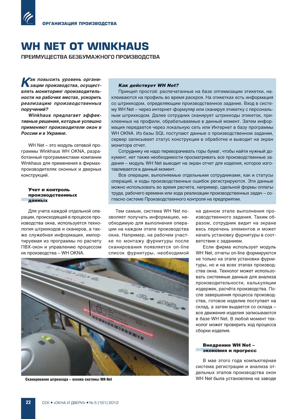 | WH NET от Winkhaus. Преимущества безбумажного производства | ...22 |