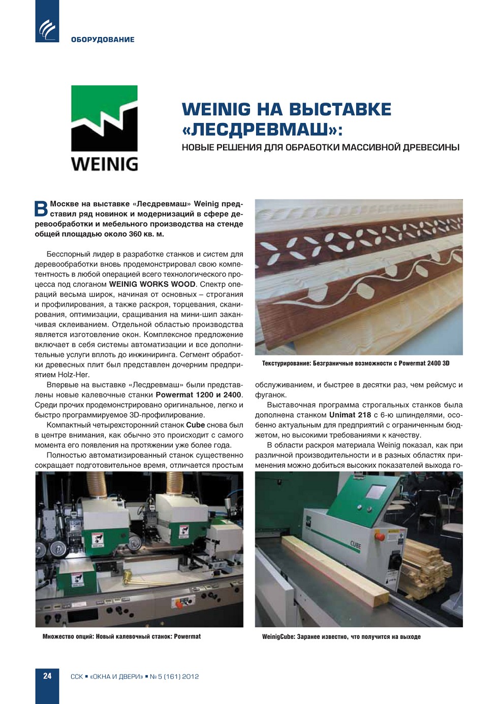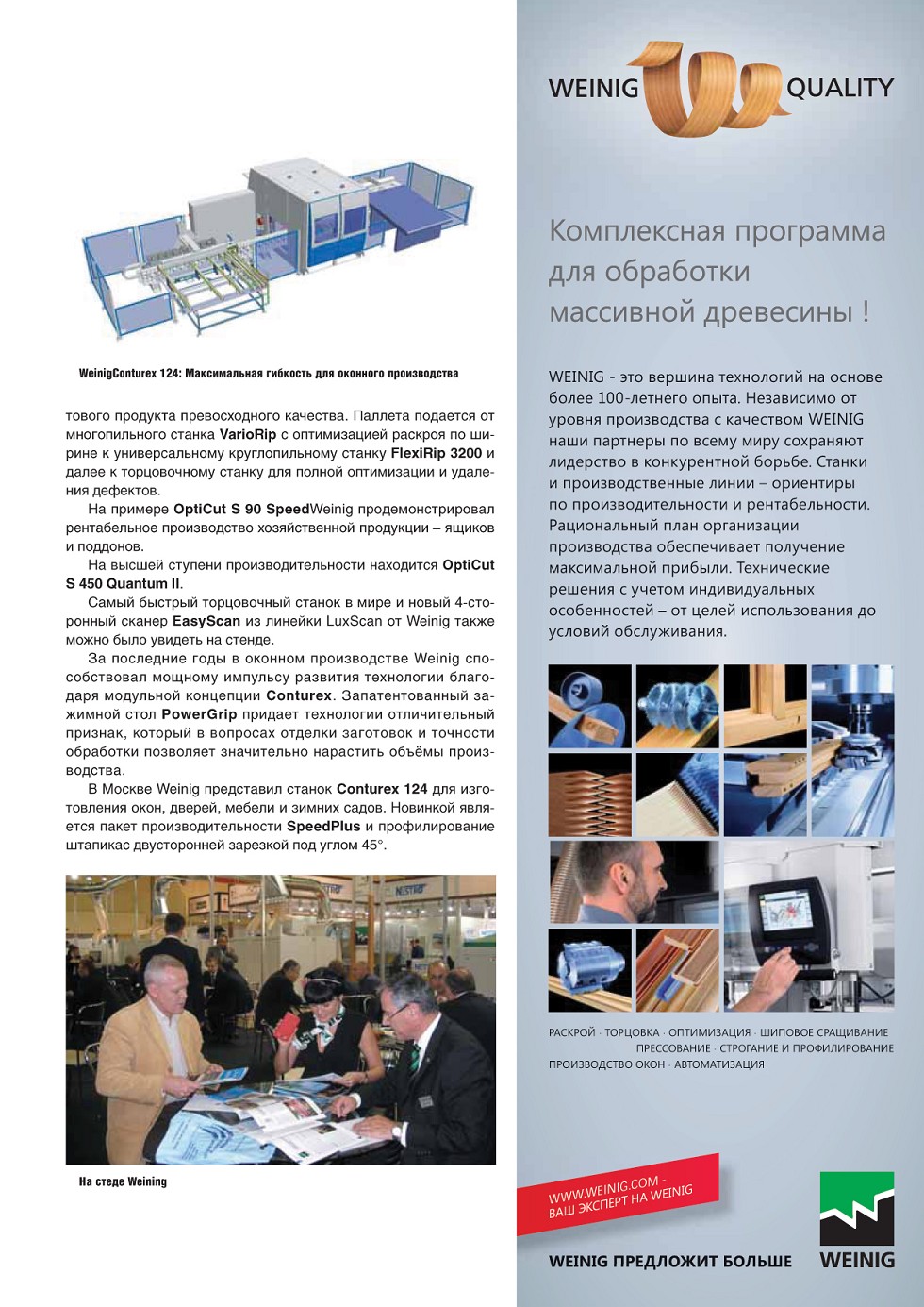 | Weinig на выставке «Лесдревмаш»: новые решения для обработки массивной древесины | ...24 |