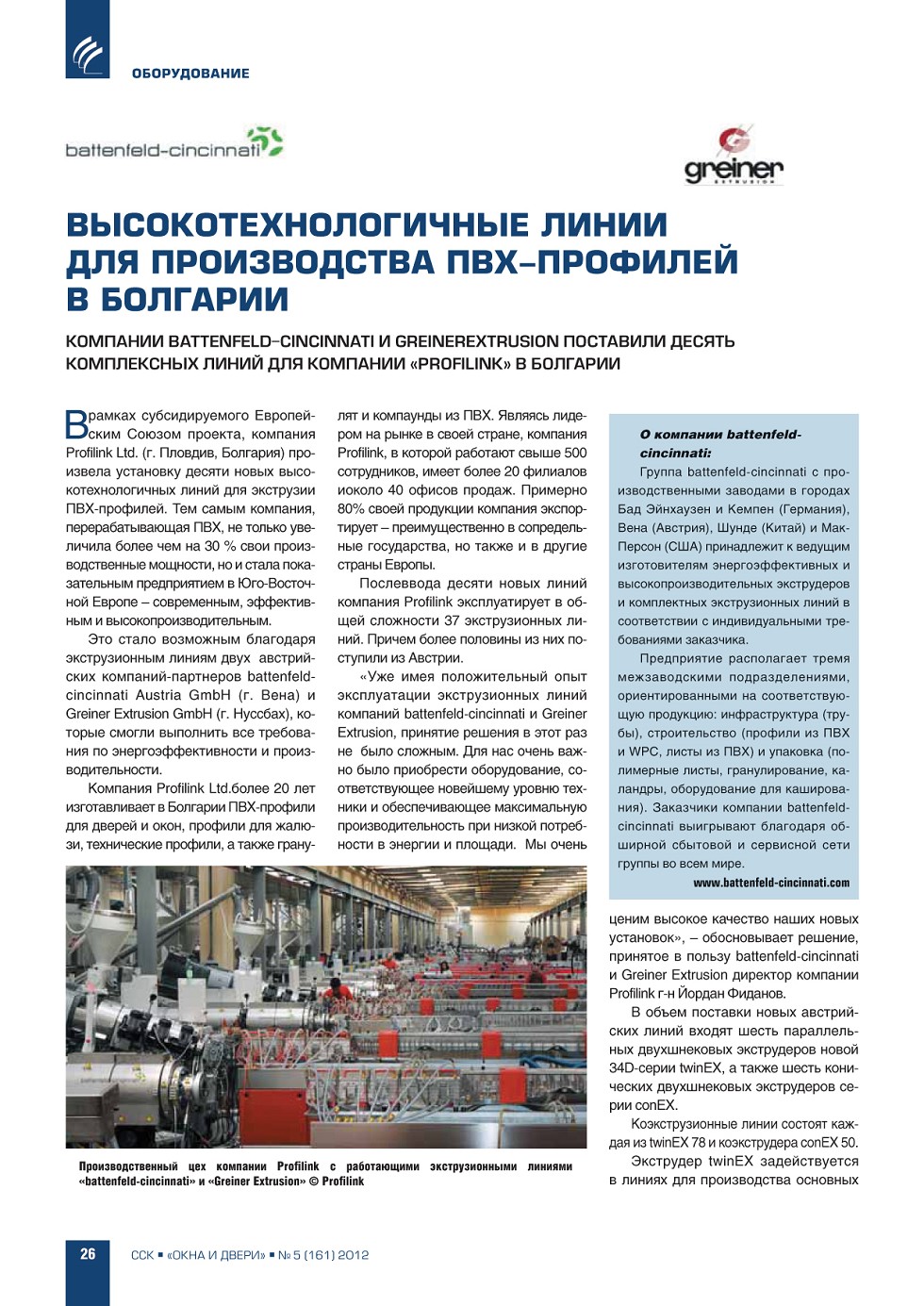 | Battenfeld-Сincinnati. Высокотехнологичные линии для производства ПВХ-профилей в Болгарии | ...26 |