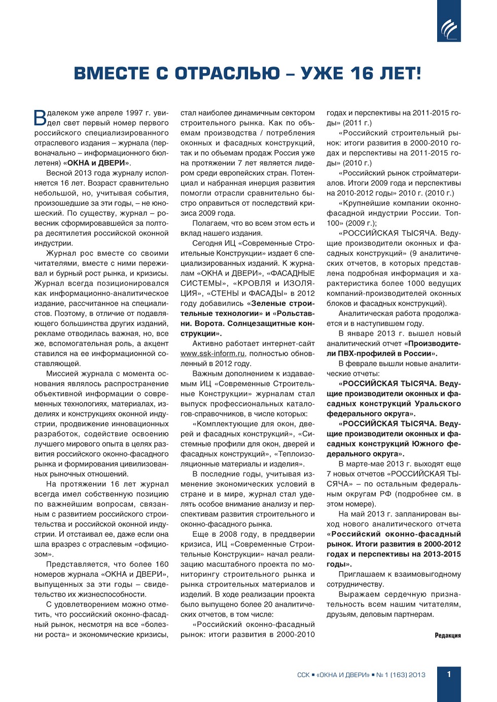 ВЫПУСК «1 (163)», 2013