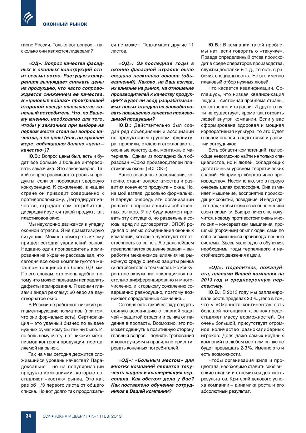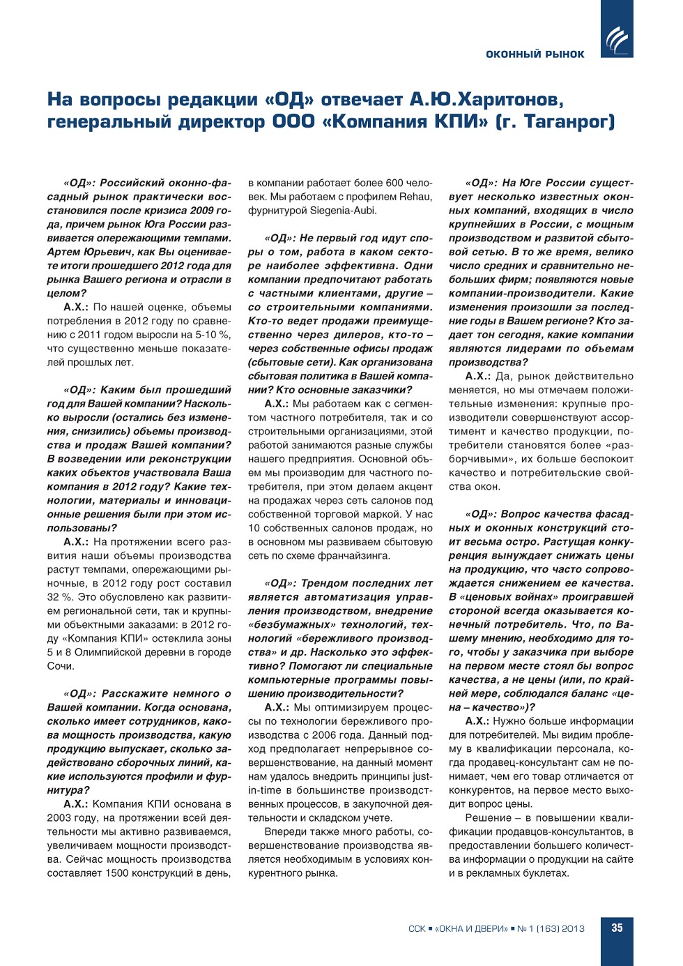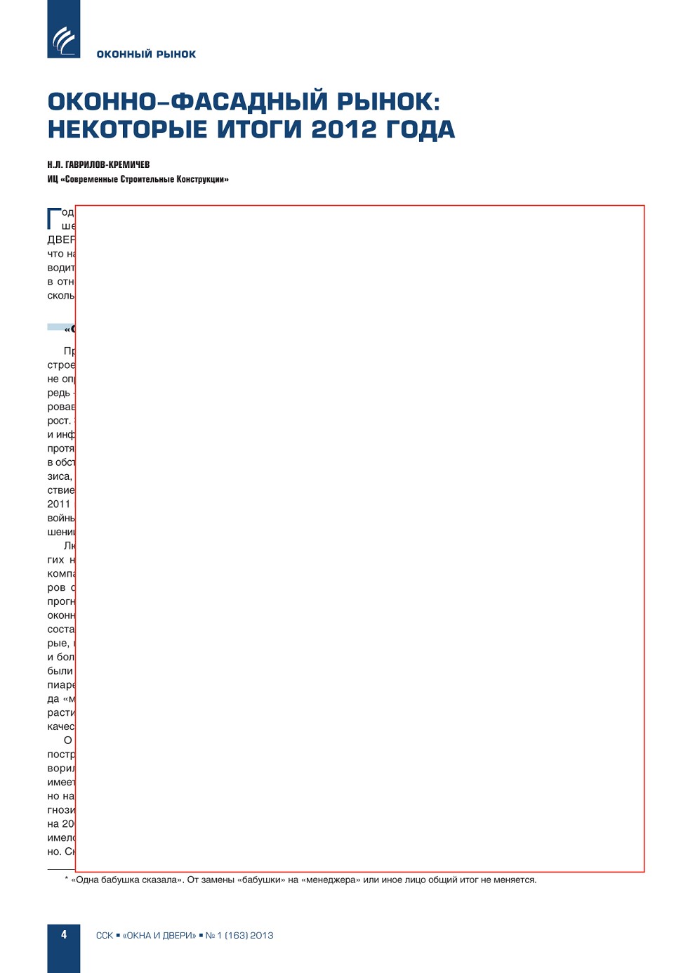 | Н.Л. Гаврилов-Кремичев (ИЦ «ССК»). Оконно-фасадный рынок: некоторые итоги 2012 года | ...4 |