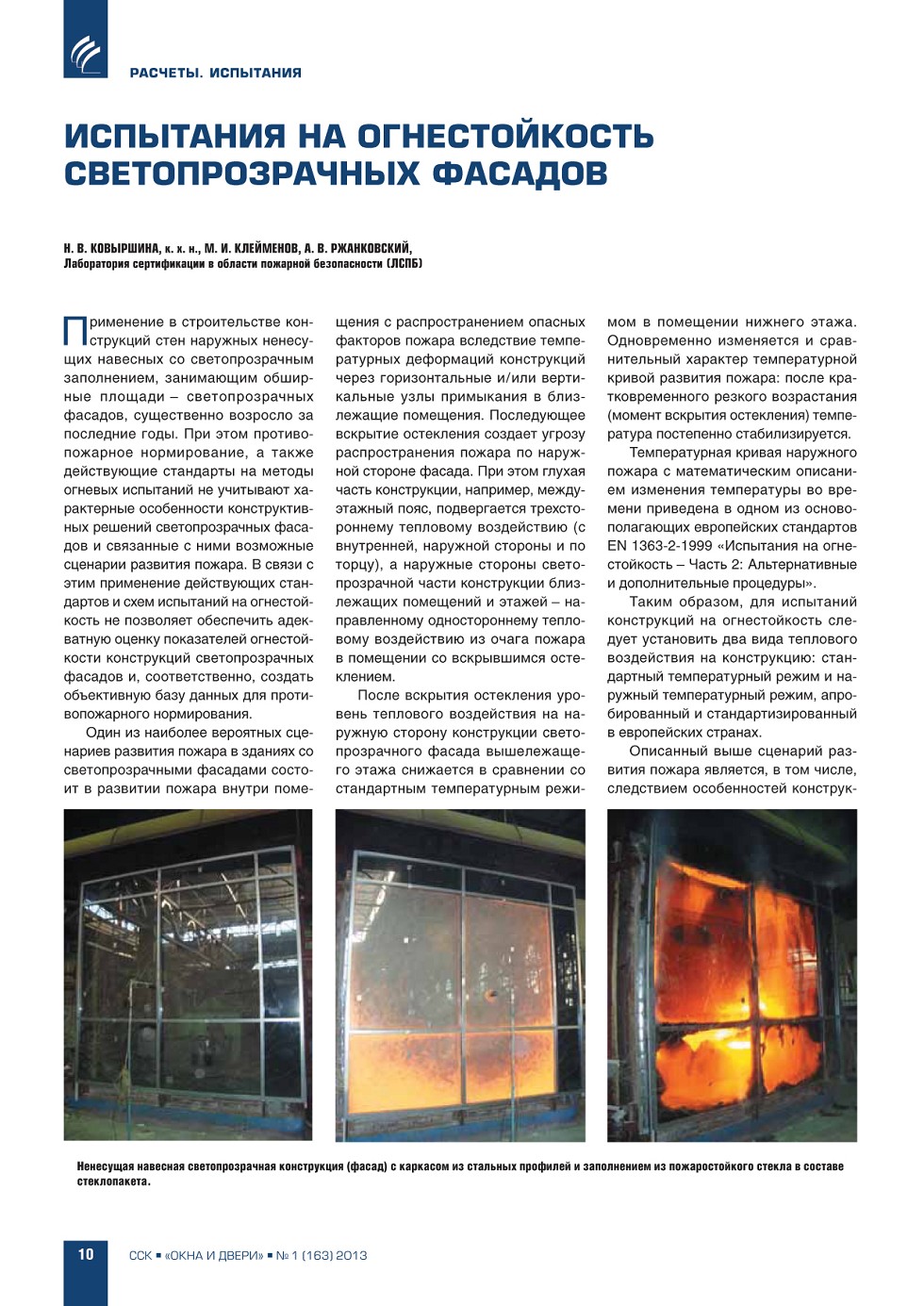 | Н.В. Ковыршина, М.И. Клейменов, А.В. Ржанковский (ЛСПБ). Испытания на огнестойкость светопрозрачных фасадов | ...10 |
