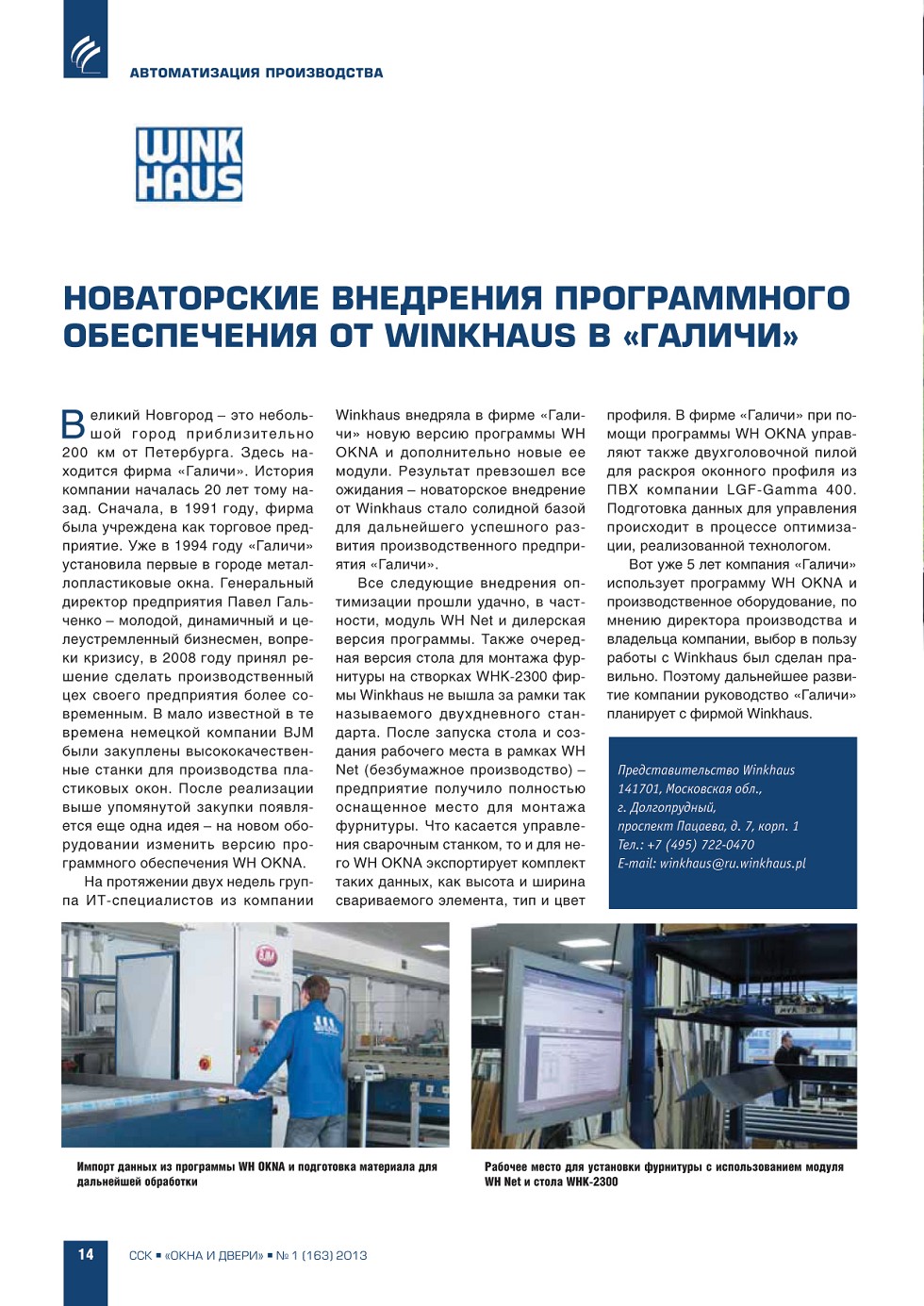 | Winkhaus. Новаторские внедрения программного обеспечения от Winkhaus в «Галичи» | ...14 |