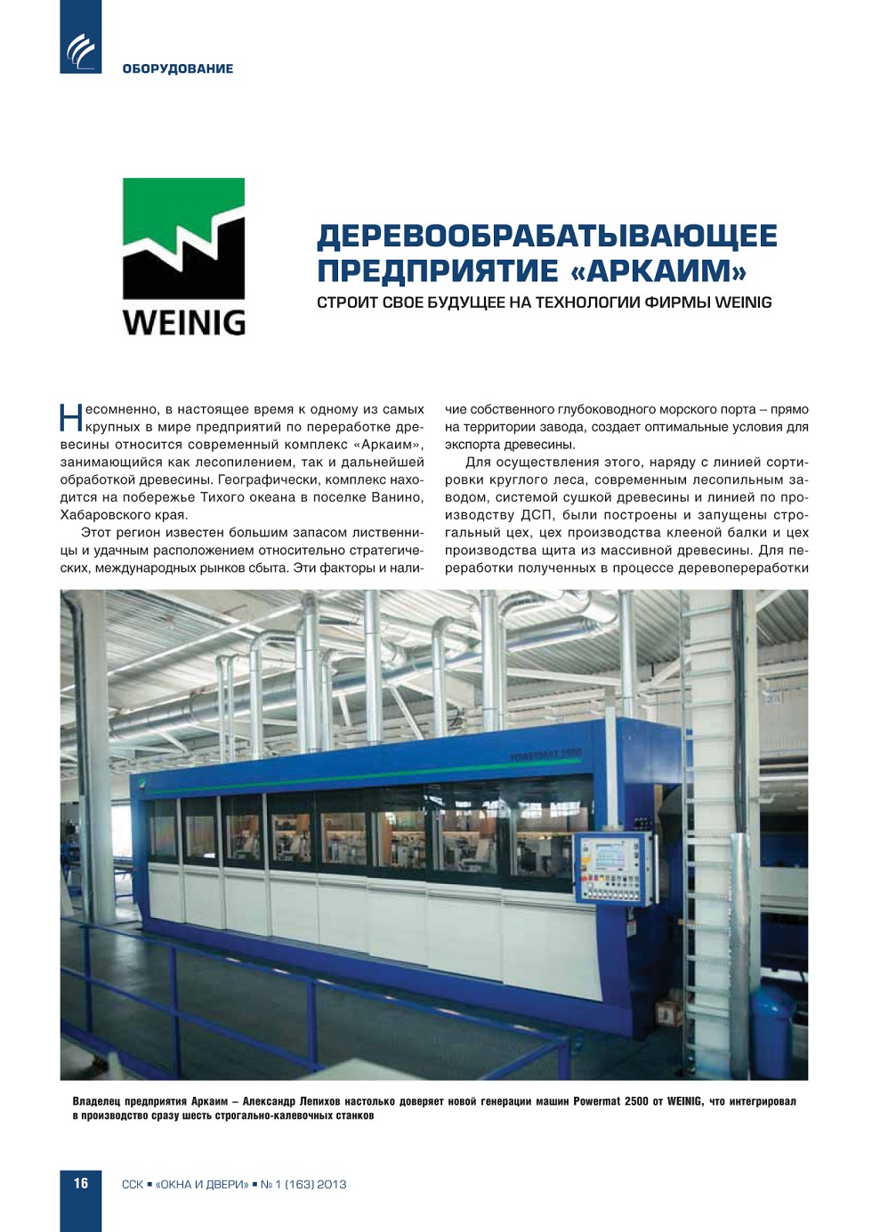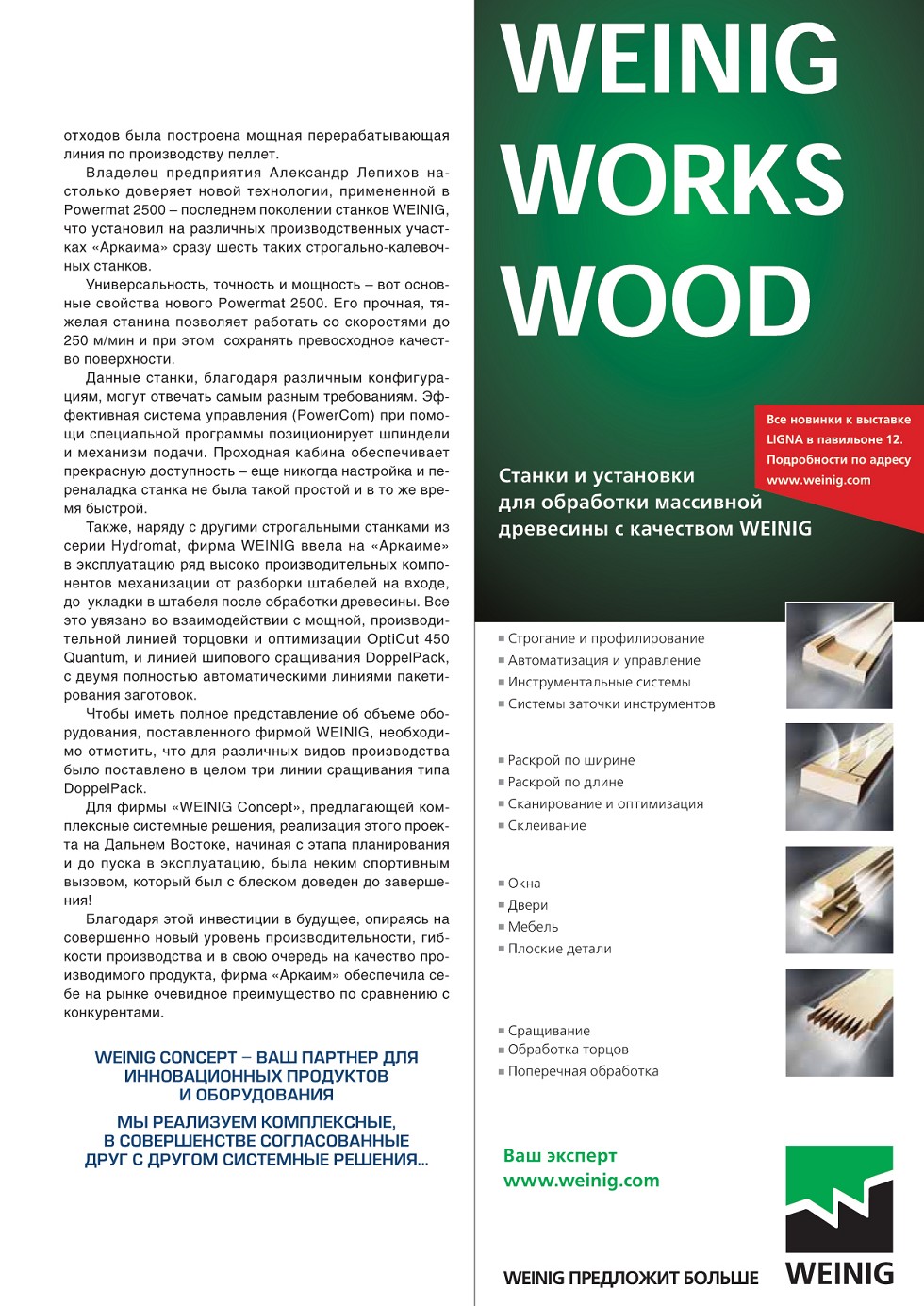 | Weinig. Деревообрабатывающее предприятие «Аркаим» строит свое будущее на технологии фирмы Weinig | ...16 |