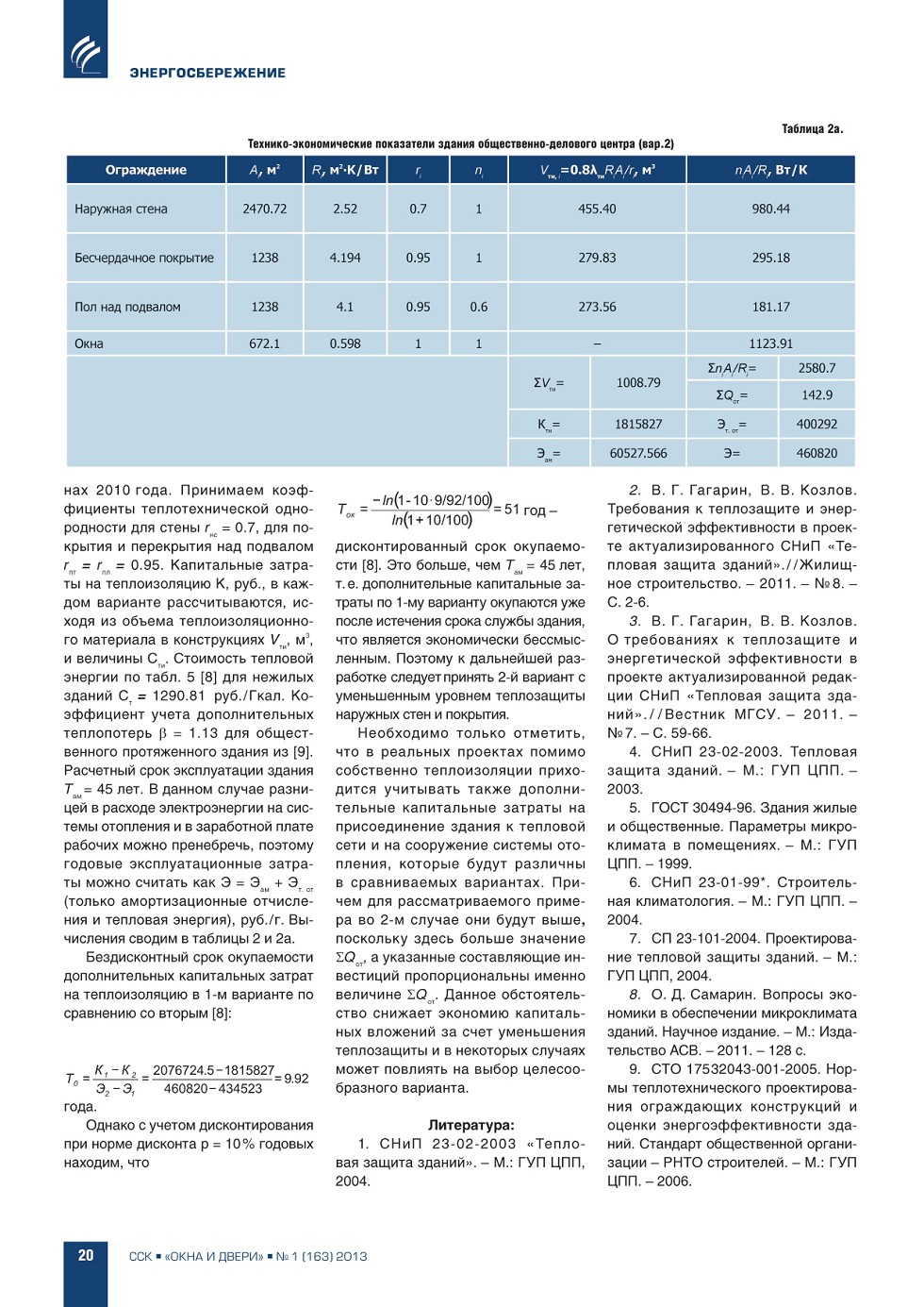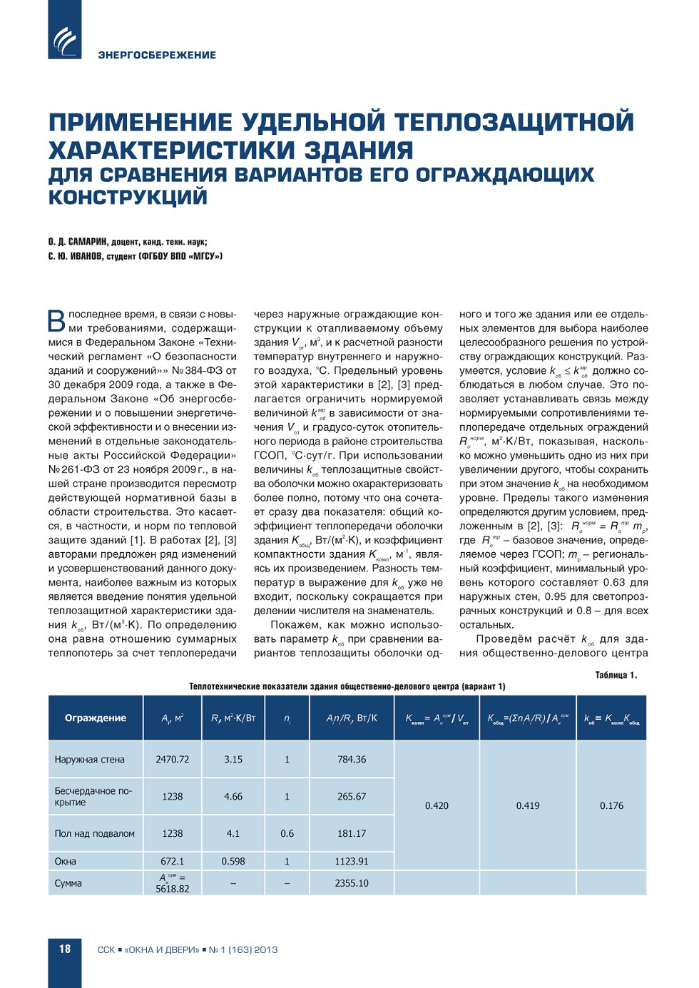 | О.Д. Самарин, С.Ю. Иванов (ФГБОУ ВПО «МГСУ»). Применение удельной теплозащитной характеристики здания для сравнения вариантов его ограждающих конструкций | ...18 |