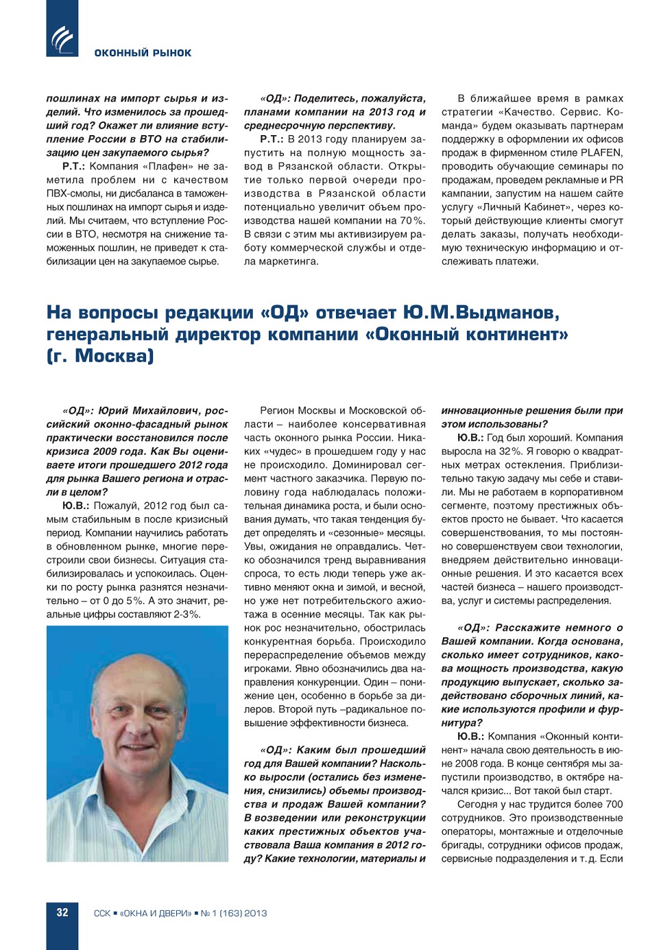 | Ю.М. Выдманов, генеральный директор компании «Оконный континент» | ...32 |