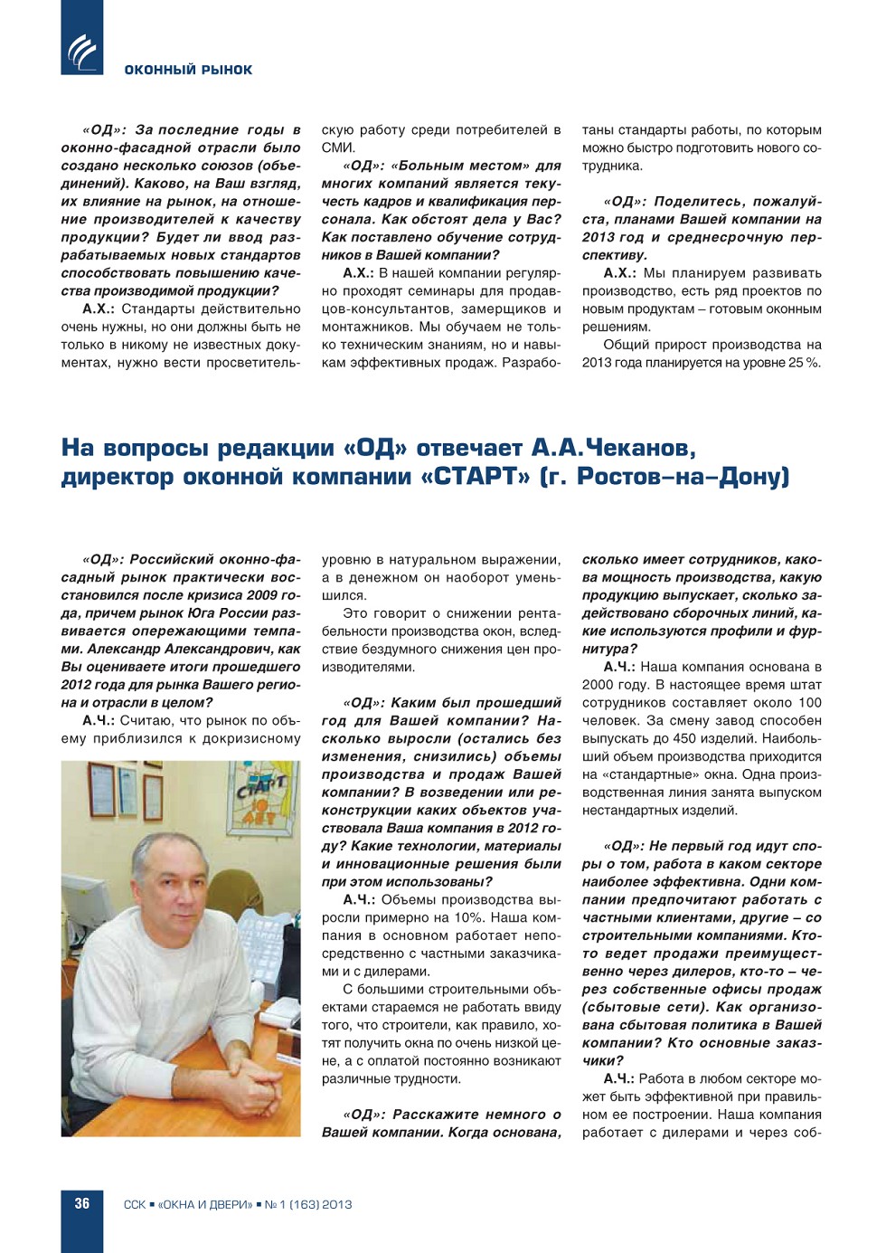| А.А. Чеканов, директор оконной компании «СТАРТ» | ...36 |
