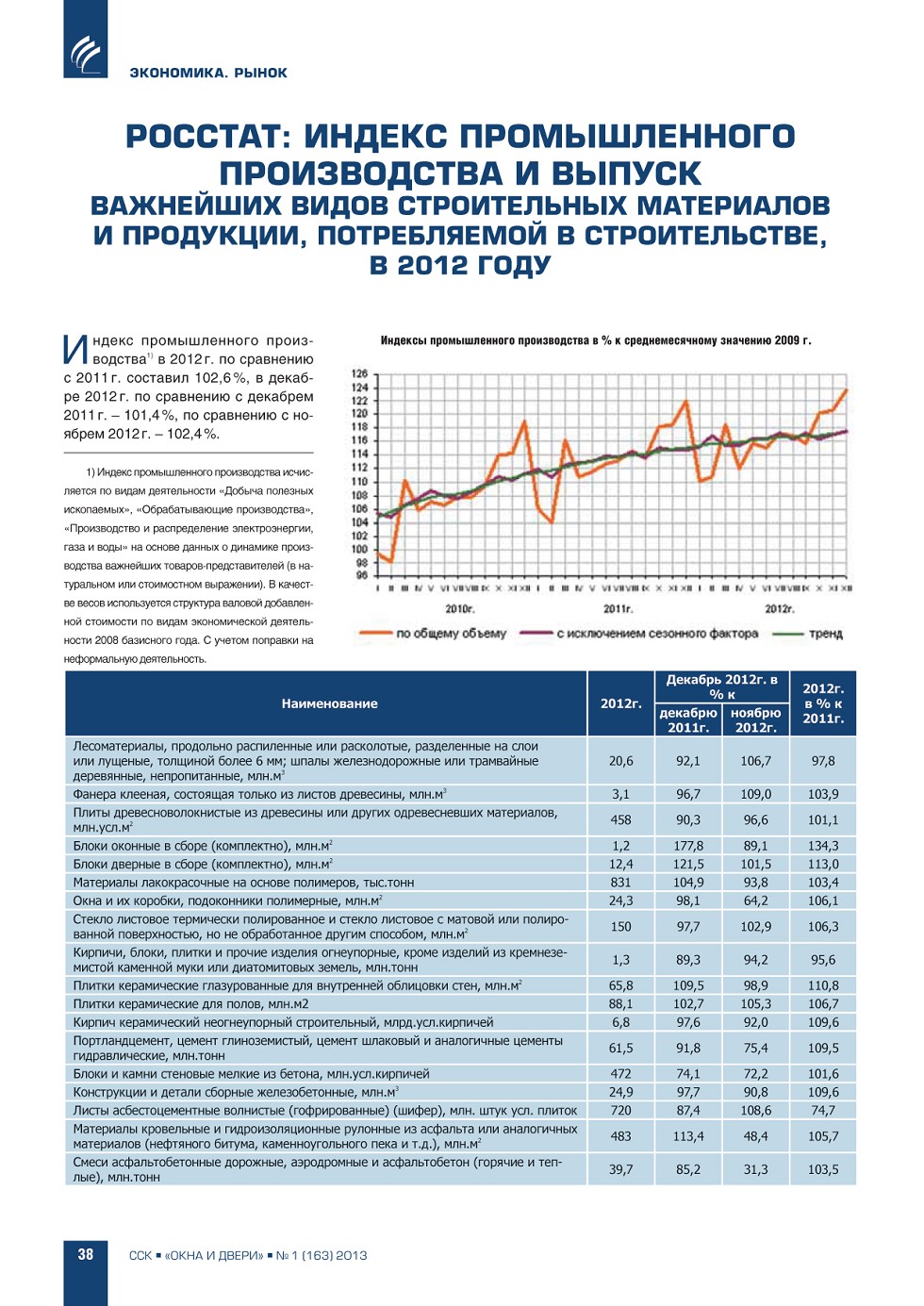 | Росстат: индекс промышленного производства и выпуск важнейших видов строительных материалов и продукции потребляемой в строительстве в 2012 году | ...38 |