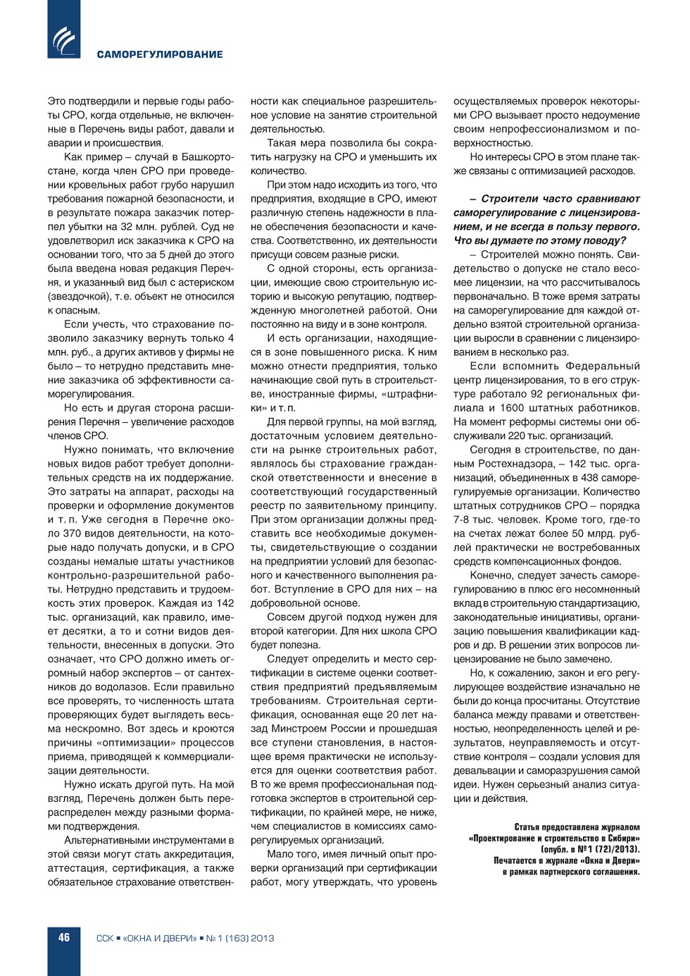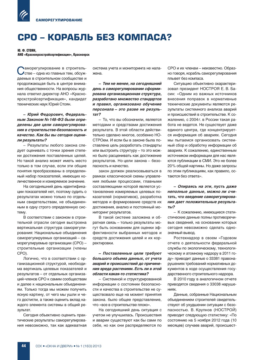 | Ю.Ф. Стоян (АНО «Красноярскстройсертификация»). СРО – корабль без компаса? | ...44 |