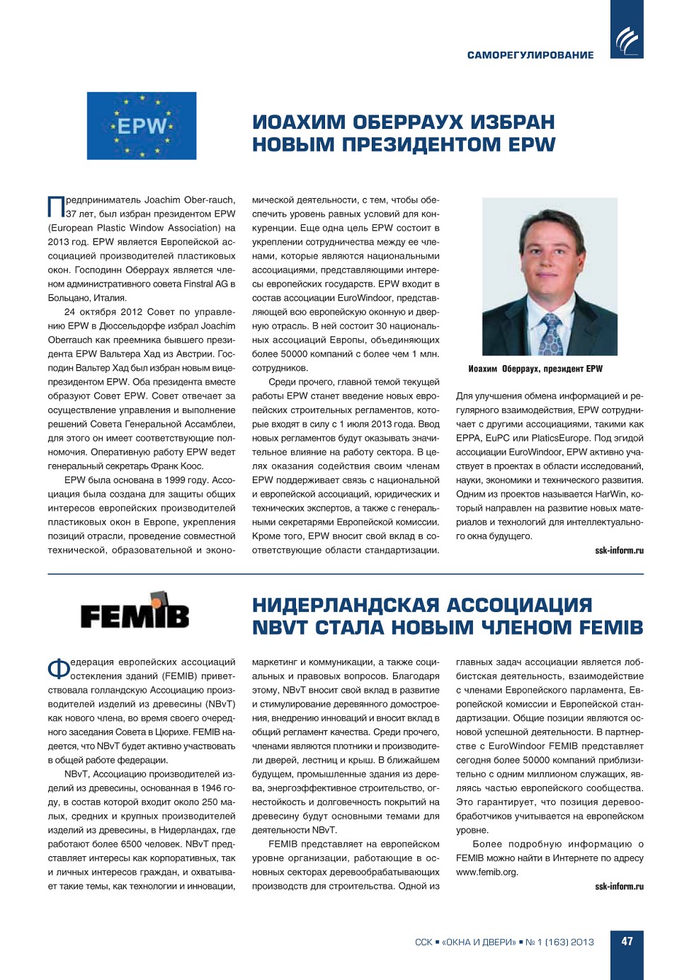 | Нидерландская ассоциация NBVT стала новым членом FEMIB | ...47 |