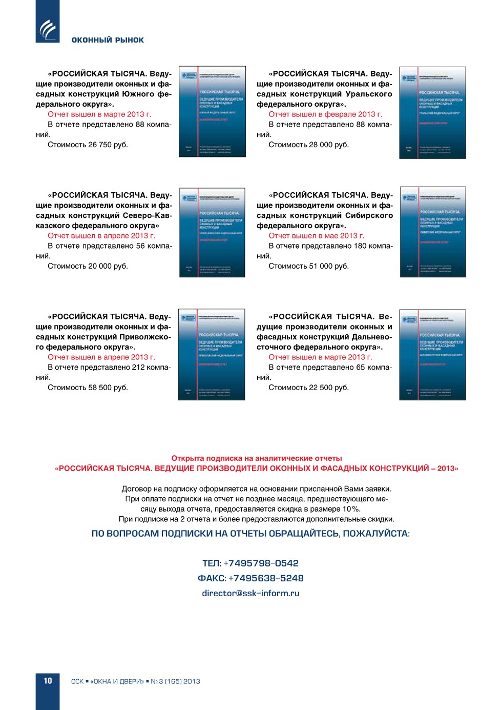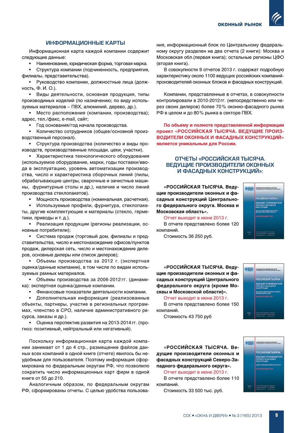 | ИЦ «ССК» информирует о выходе новых аналитических отчетов, подготовленных в рамках реализации проекта «РОССИЙСКАЯ ТЫСЯЧА. Ведущие производители оконных и фасадных конструкций» | ...8 |