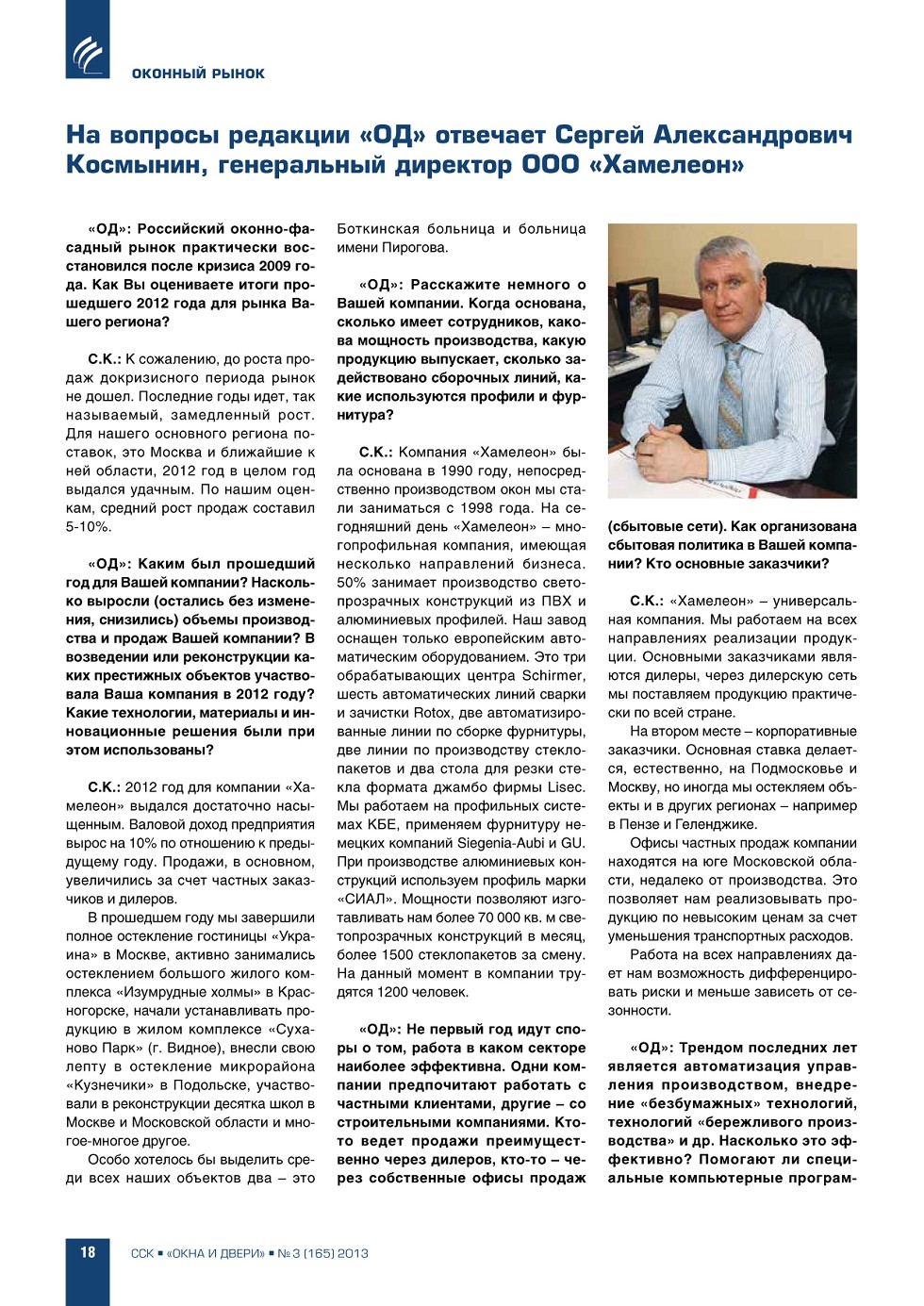 | На вопросы редакции отвечает С.А. Космынин, генеральный директор ООО «Хамелеон» | ...18 |