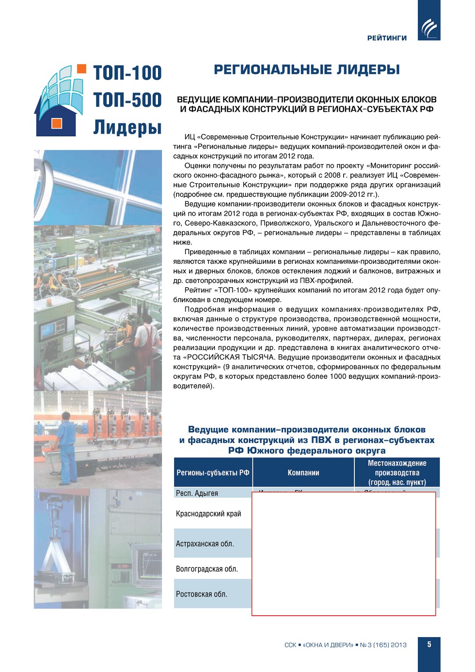 | Региональные лидеры – 2012 | ...5 |