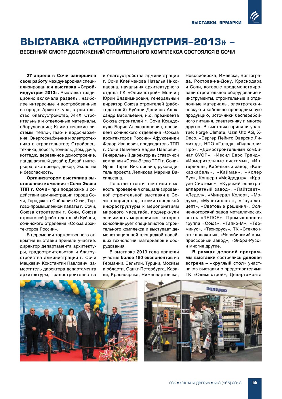 | Выставка «Стройиндустрия-2013 – весенний смотр достижений строительного комплекса состоялся в Сочи | ...55 |