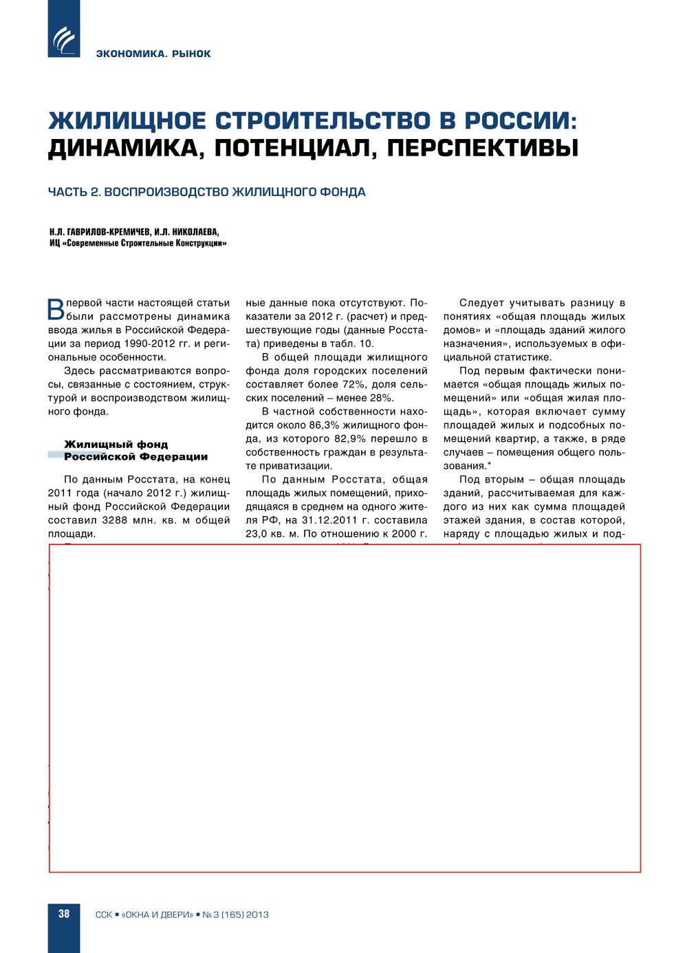 | Н.Л. Гаврилов-Кремичев, И.Л. Николаева (ИЦ «ССК»). Жилищное строительство в России: динамика, потенциал, перспективы. Часть 2. Воспроизводство жилищного фонда | ...38 |