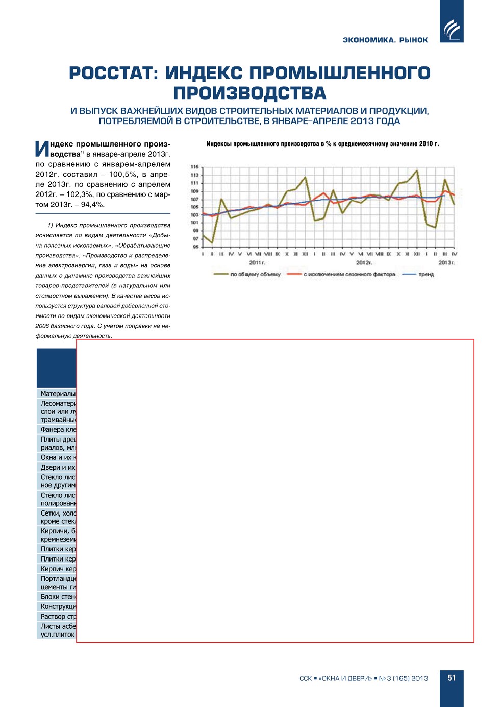 | Росстат: индекс промышленного производства и выпуск важнейших видов строительных материалов и продукции потребляемой в строительстве, в январе-апреле 2013 года | ...51 |