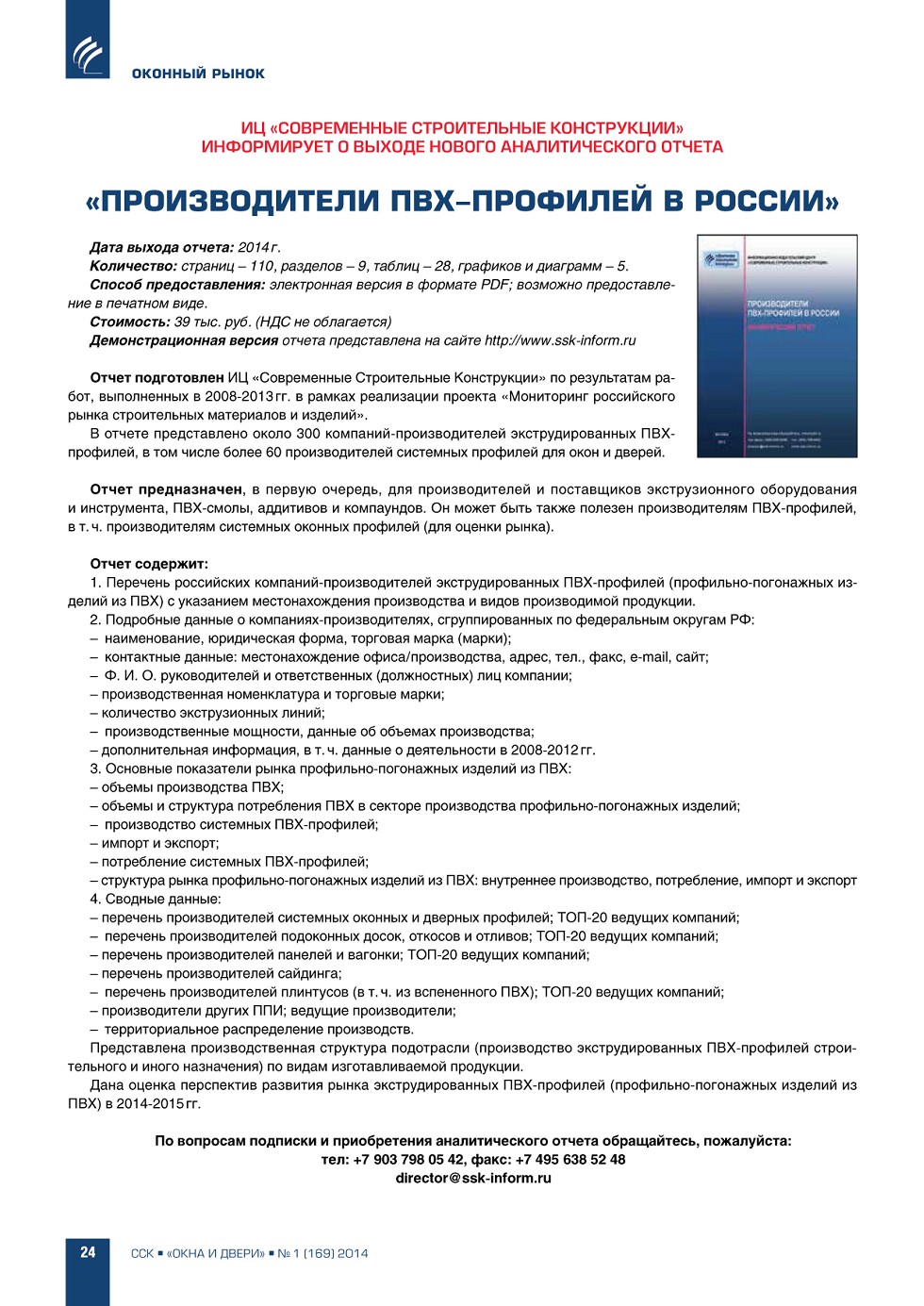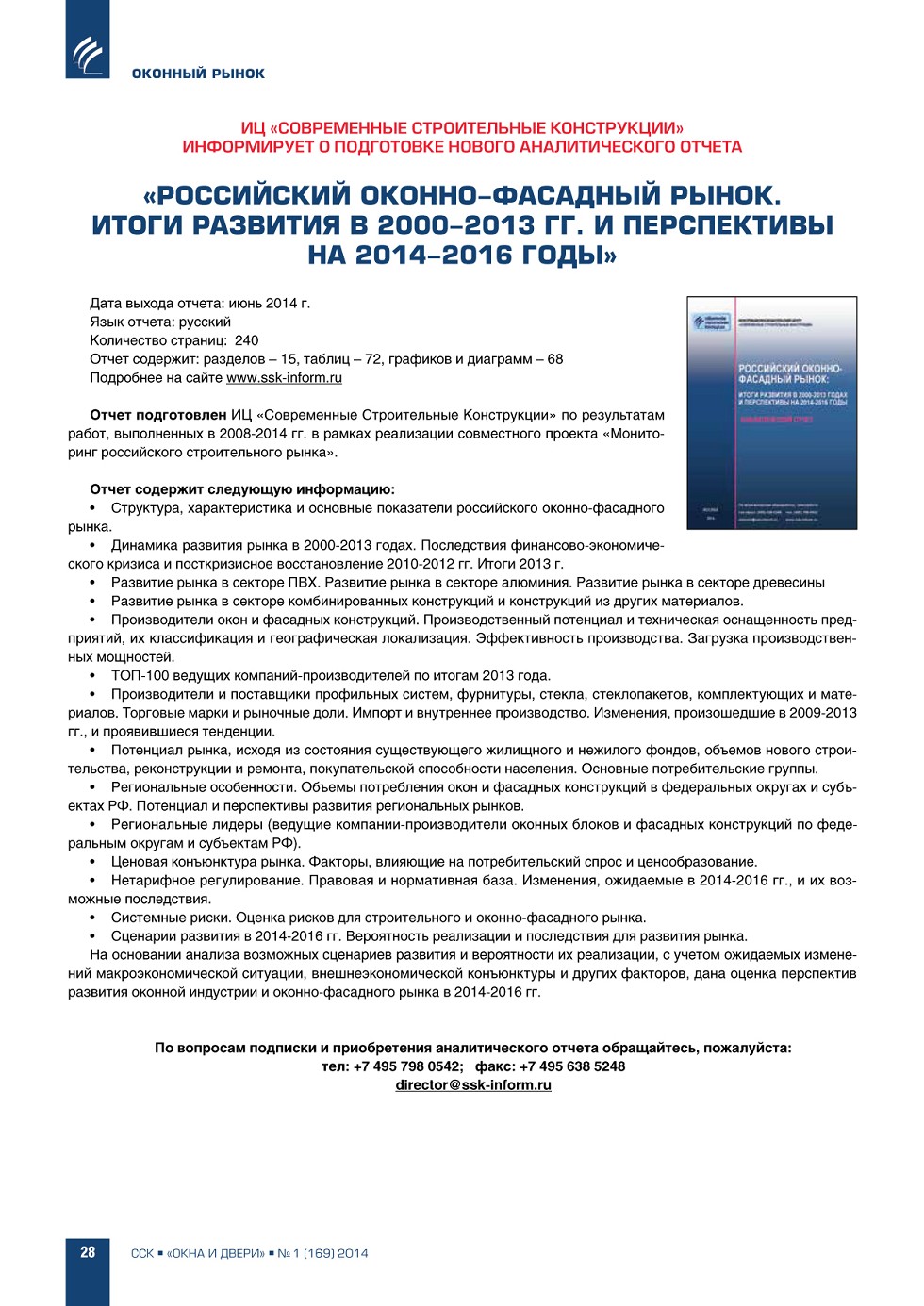 Аналитический отчет «Российский оконно-фасадный рынок. Итоги развития в 2000-2013 гг и перспективы на 2014-2016 годы» (анонс)