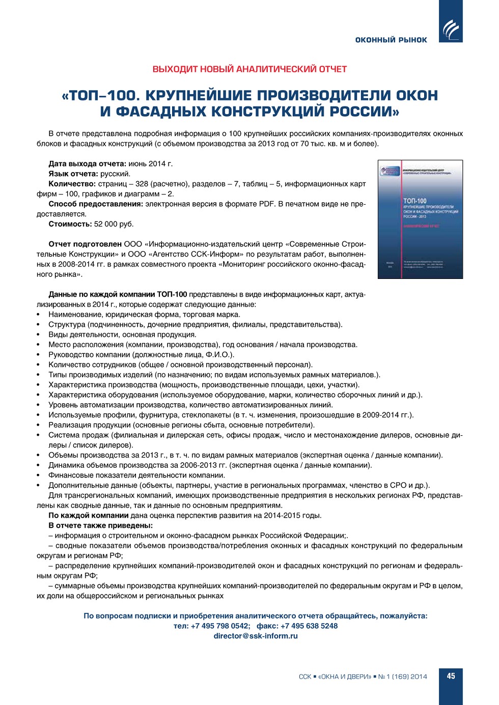 Аналитический отчет «ТОП-100 Крупнейшие производители окон и фасадных конструкций России-2013» (анонс)