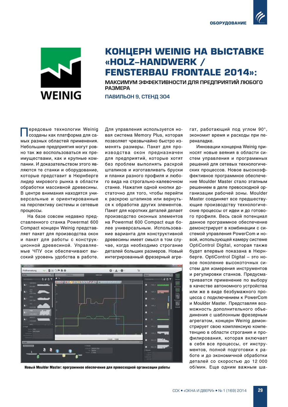Концерн Weinig на выставке «Holz-Handwerk / Fensterbau Frontale 2014»: максимум эффективности для предприятий любого размера