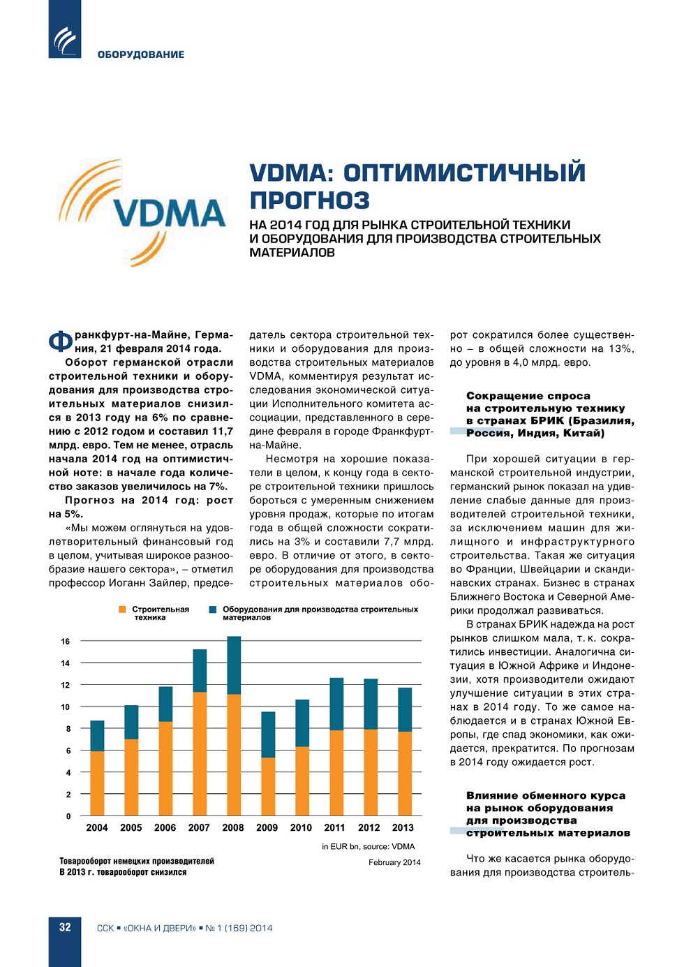 VDMA: оптимистичный прогноз на 2014 год для рынка строительной техники и оборудования для производства строительных материалов