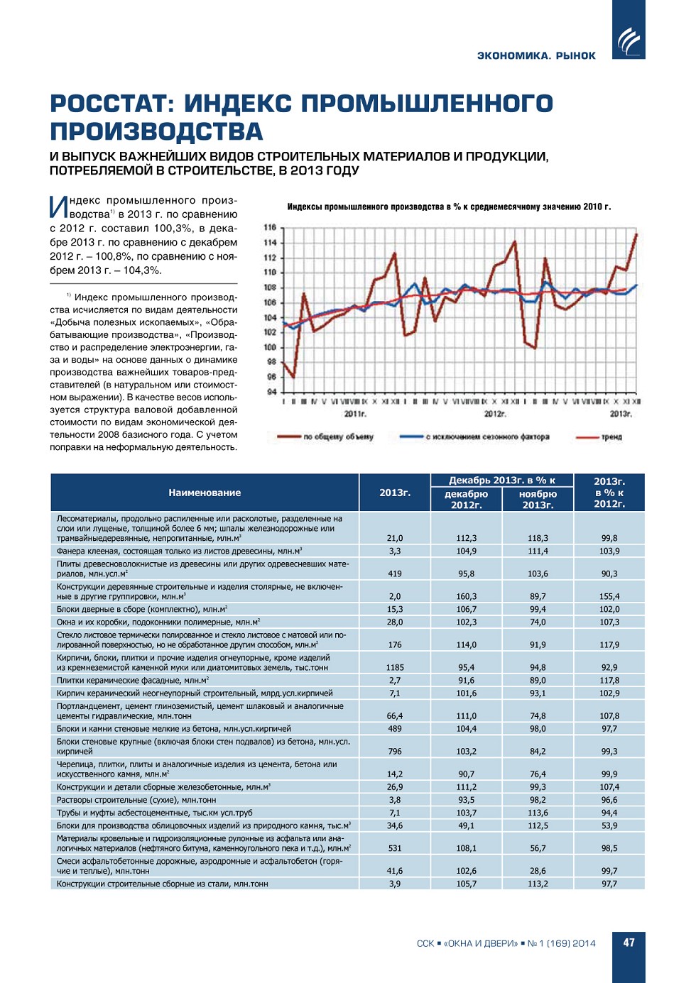 Росстат: индекс промышленного производства и выпуск важнейших видов строительных материалов и продукции, потребляемой в строительстве, в 2013 году